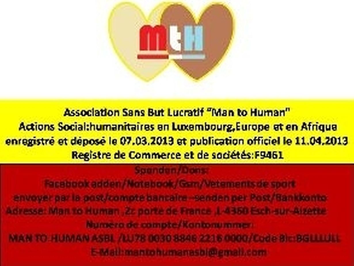 L'ASBL Man To Human Remercie le club Club Sportif Sanem pour les dons de matériel de sport 30/07/13 Sanem