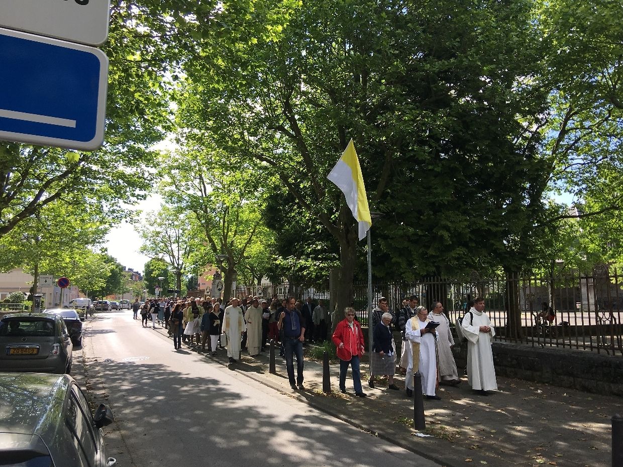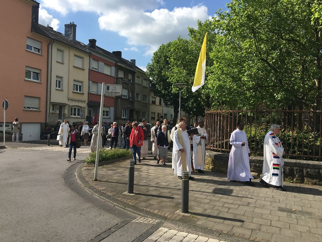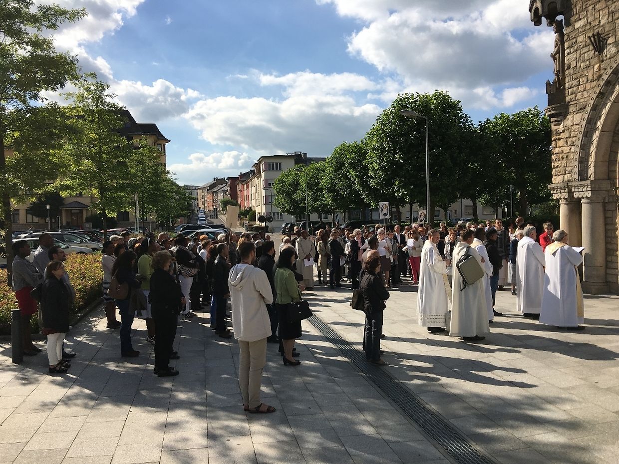 Dans le cadre du Jubilé de la Miséricorde, le doyenné d’Esch avait invité dimanche 19 juin à un pèlerinage de la miséricorde. Nous nous sommes rassemblés près de la croix avec le buste de St Jean-Paul II près du rond-point Raemerich. En procession nous avons prié le rosaire de la miséricorde en plusieurs langues et nous nous sommes dirigés vers l’Église St Henri pour y célébrer une messe solennelle chantée par la chorale réunie intercommunautaire.