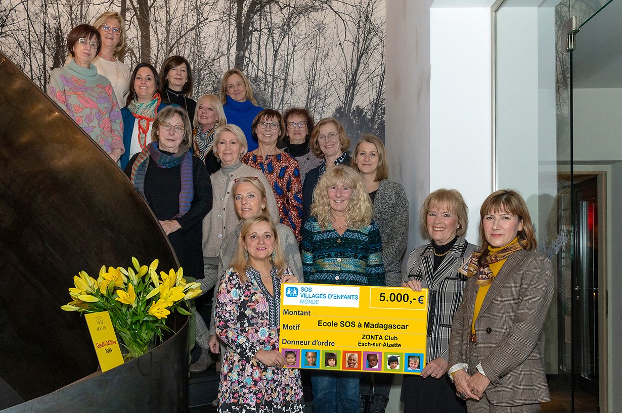 Suite à son traditionnel Advents-Patt, qui s’est tenu le 30 novembre 2023 à Mondercange, le Zonta Club d’Esch-sur-Alzette a soutenu l’asbl luxembourgeoise SOS Villages d’Enfants Monde à qui elle vient de remettre 5.000€. Cette somme résulte de la vente de Couronnes de l’Avent et de décorations artisanales lors du Marché de Noël 2023 du service club. Elle sera attribuée à l’école publique de Tanandava dans le sud de Madagascar qui vise à garantir à ses élèves une éducation inclusive et de qualité et aux filles leur maintien à l’école. En ce début d’année 2024, l’école sera dotée de deux salles de classe avec un bloc de latrines, ce qui lui permettra d’offrir un bon cadre d’apprentissage aux élèves. Le projet de construction et d’aménagement des classes est en cours de finalisation. SOS Villages d’Enfants Monde remercie vivement le Zonta Club d’Esch-sur-Alzette pour sa belle solidarité.