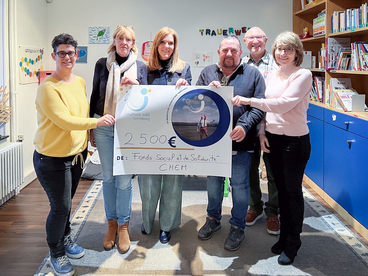 Chaque année, le Fonds Social et de Solidarité du CHEM organise une vente de gaufres sur nos trois sites. L'an dernier, il a vendu 850 gaufres, ce qui lui a permis de récolter 2500 euros. Ce bénéfice est entièrement reversé à une association caritative. Cette fois-ci, c'est l'association Trauerwee asbl qui a été choisie.