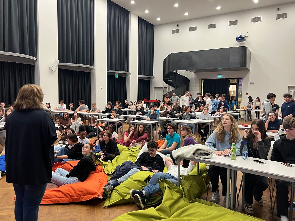 Vum 21. op den 22. Abrëll hunn ëm déi 100 Schüler un der 5. Editioun vun eiser Sproochennuecht deel geholl. A verschiddenen Atelieren an Aktivitéite konnten si d’Sproochen e bëssi anescht erliewe wéi am Schoulalldag an hirer Kreativitéit fräie Laf loossen. D'Ateliere goufe vu Sproochen- a Konschtproffen, eiser Bibliothekärin a Schüler vun der Optioun Pimp my bib' ausgeschafft an encadréiert. No 2 Atelieren, engem gemeinsamen Iessen an enger kuerzer Virstellung vun deem wat an e puer Ateliere gemaach ginn ass, konnten d'Schüler den Owend bei engem Film oder Gemeinschaftsspiller ausklénge loossen, éiert um 1 Auer d'Nuetsrou agelaut ginn ass. E puer Klassenzëmmer sinn zu Dortoir'en ëmfunktionéiert ginn, wou d'Schüler geschlof hunn (hätte solle schlofen). No (respektiv virum) engem Croissant Samschdes moies, ass alles geraumt ginn éiert et um 10 Auer nees heem gaangen ass.
