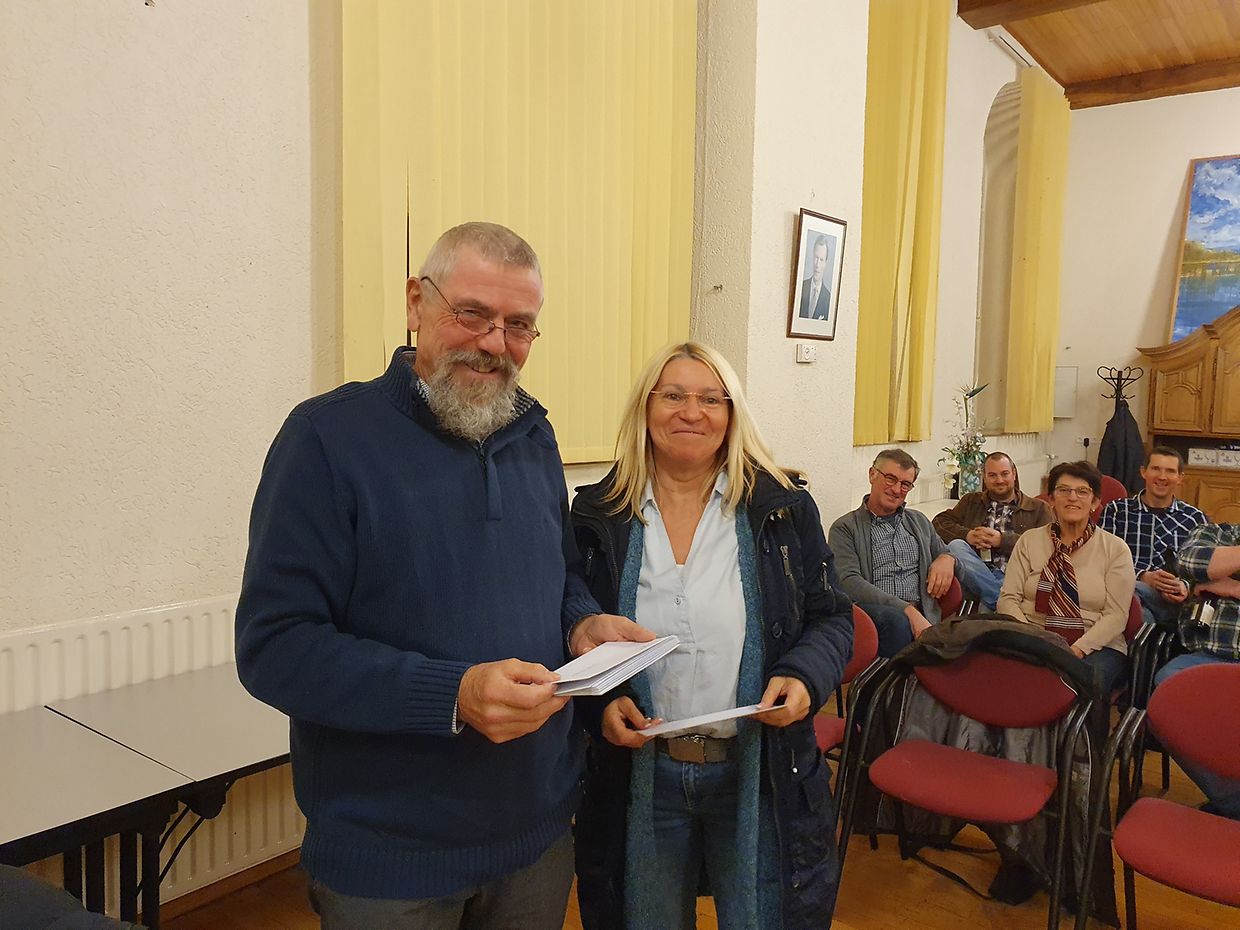 Duerno huet de Marc Binsfeld, Caissier vum Comité Hobbynuetsmaart asbl de Vertrieder vun de verschiddene Veräiner e symbolesche Scheck iwwerreecht.