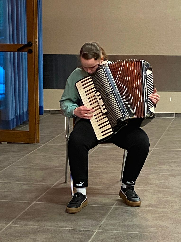 No sou ville gudden Noriichten gouf deen Owend bei engem gemittliche Patt an deem engen oder annere Stéck Toart ausklénge geloss. Engt vun den zwee Meedercher hott als Merci an Unerkennung puer Stécker um Accordeon gespillt.