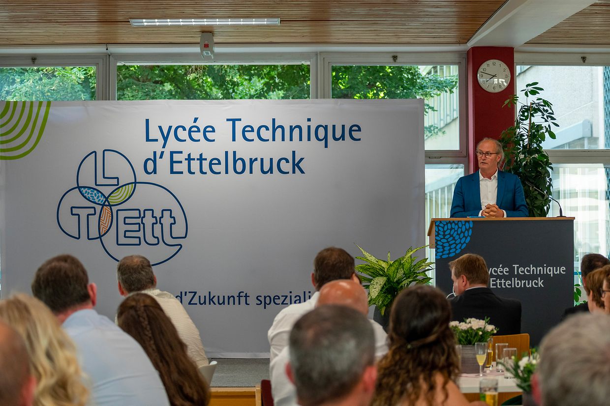 Samschdes Moies huet d’Madamm Véronique Schaber, d’Directrice vum Service de la Formation professionnelle, als Vertriederin vun eisem Educatiounsminister, de Laureate vun de Klassen 1TPCMF, 1TPCM1 an 1TPCM2 gratuléiert an ass an hirer Ried och op hir eegen Zäit hei am LTEtt agaangen. Och de Buergermeeschter vun der Gemeng Ettelbréck, den Här Jean-Paul Schaaf, huet et sech net huele gelooss, de Schüler:inne vun de Klassen 1TPCM ze gratuléieren an ass besonnesch op hir Roll an der Gesellschaft agaangen.