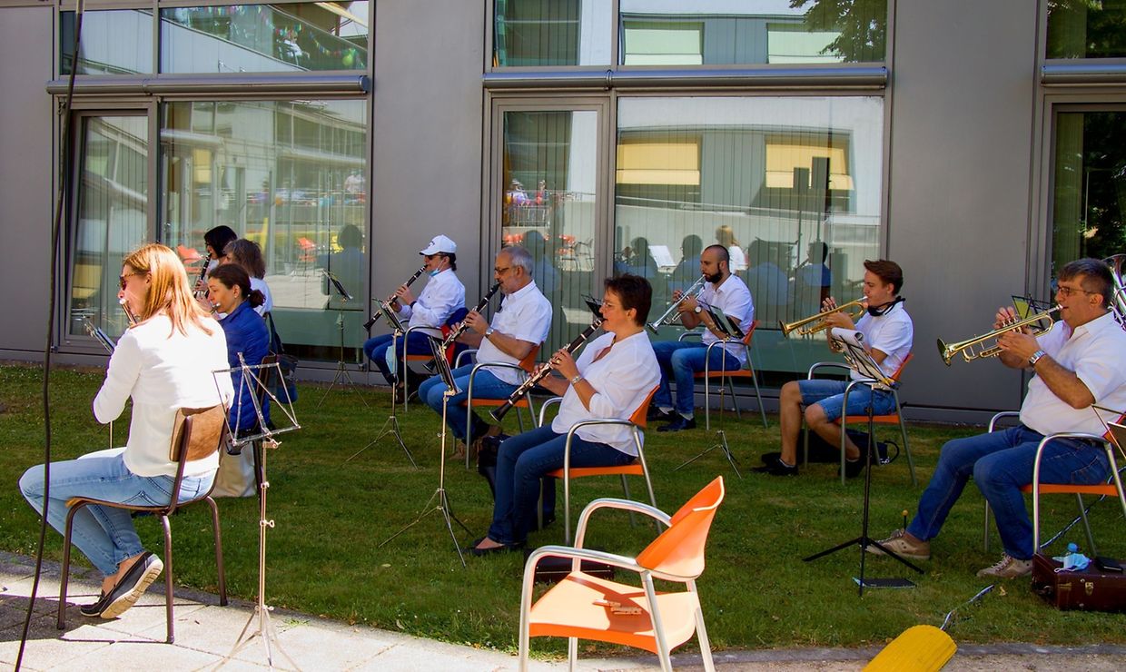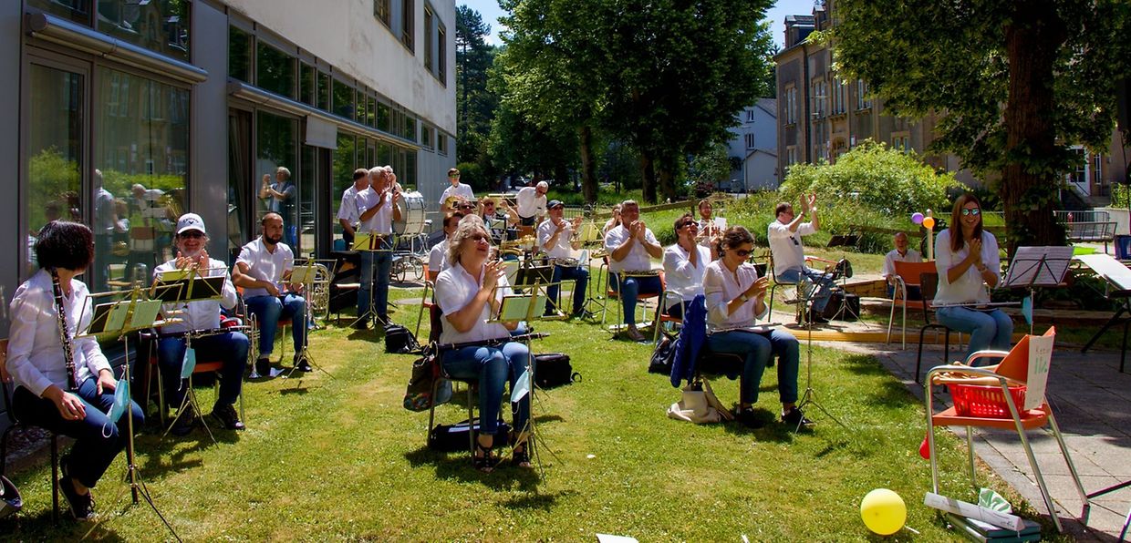 Den 30 Mee huet d'Ettelbrécker Musek den Pensionnairen aus dem Centre Pontalize en Concert-Apéritif am Park gespillt. Wéint den Oploen sin net méi wéi eng ronn 20 Museker fir desen klengen Concert zesummen komm, fir den Bewunner aus dem Centre Pontalize esou eng kleng Freed kennen ze maachen. Natierlech waren och eis Museker frou endlech mol nees zesummen musizéiren ze kennen. Selbstverständlech as sech dobei genau un d'Secherheetsofstänn gehaalen gin.