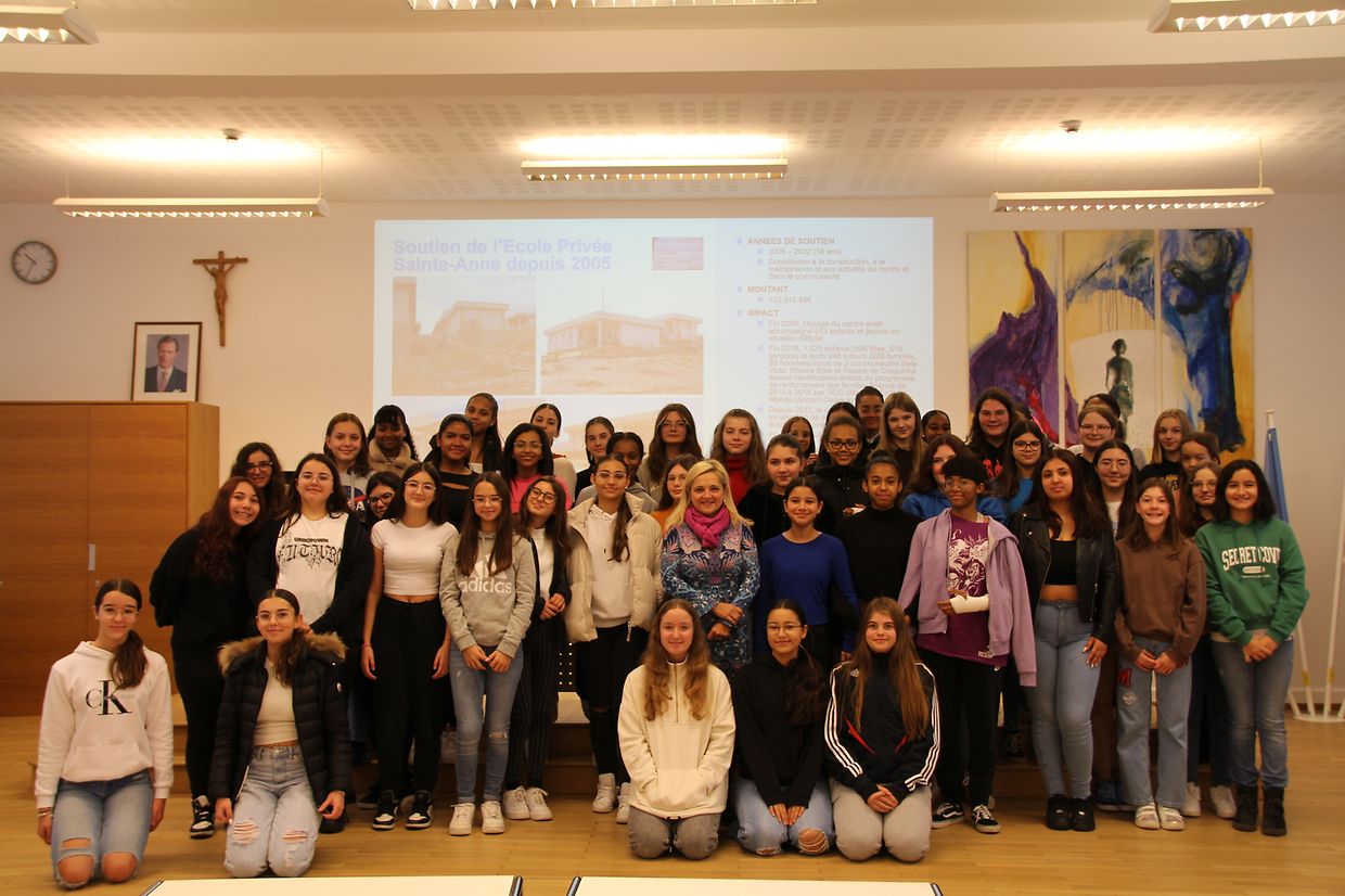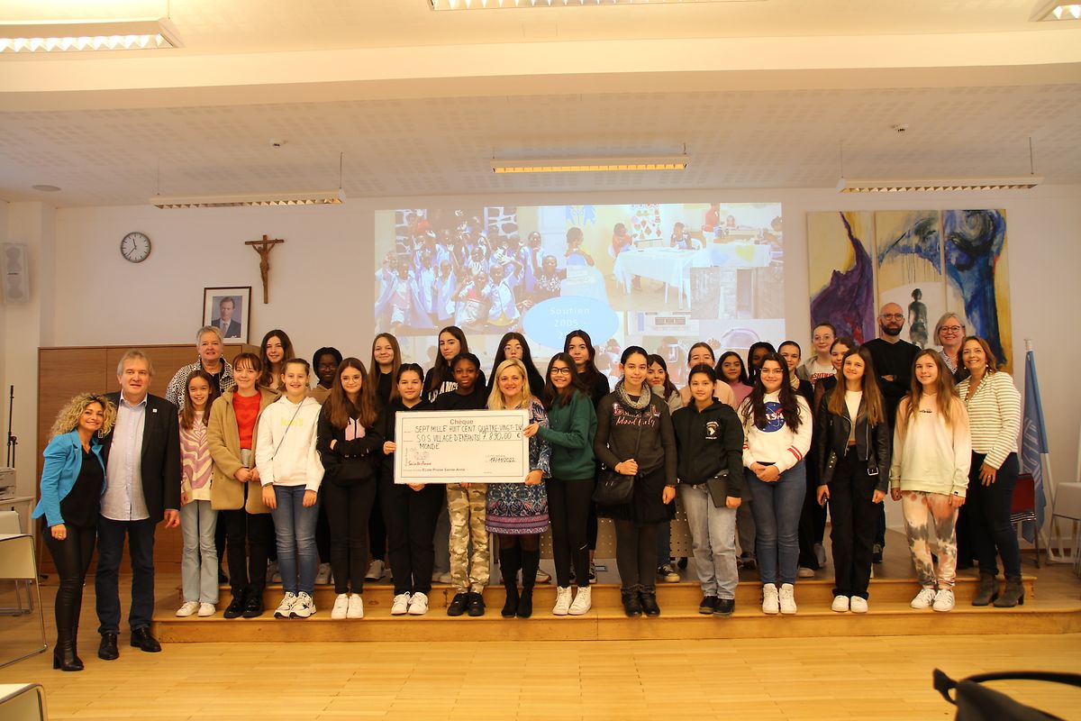 SOS Villages d'Enfants Monde ënnerstëtzt op der ganzer Welt an 138 Länner méi wéi 1.000.000 Kanner an hir Elteren. Ouni finanziell Hëllef kéinten si hir wäertvoll Aarbecht awer net maachen an esou freeën si sech iwwer all Spend. Zënter 17 Joer setzt sech d'Ecole Privée Sainte-Anne mat hirem projet de solidarité fir d'SOS Villages d'Enfants Monde an. 2008 konnt duerch den Engagement vun de Schülerinnen an dem ganzen Corps enseignant e Centre social zu Mindelo op den Kapverden säi Betrib ophuelen, wou all Dag Stroossekanner net nëmmen Iessen kréien an e Bett fir ze schlofen mee och d'Méiglechkeet an d'Schoul ze goen oder eng Ausbildung ze maachen an wou Famillen an Nout gehollef kréien. Och dëst Schouljoer konnt Mme Sophie Glesener, Présidentin vun SOS Villages d'Enfants Monde Luxembourg, sech bei hirem Besuch an der Ecole Privée Sainte-Anne iwwert e Scheck vun 7890 Euro freeën.
