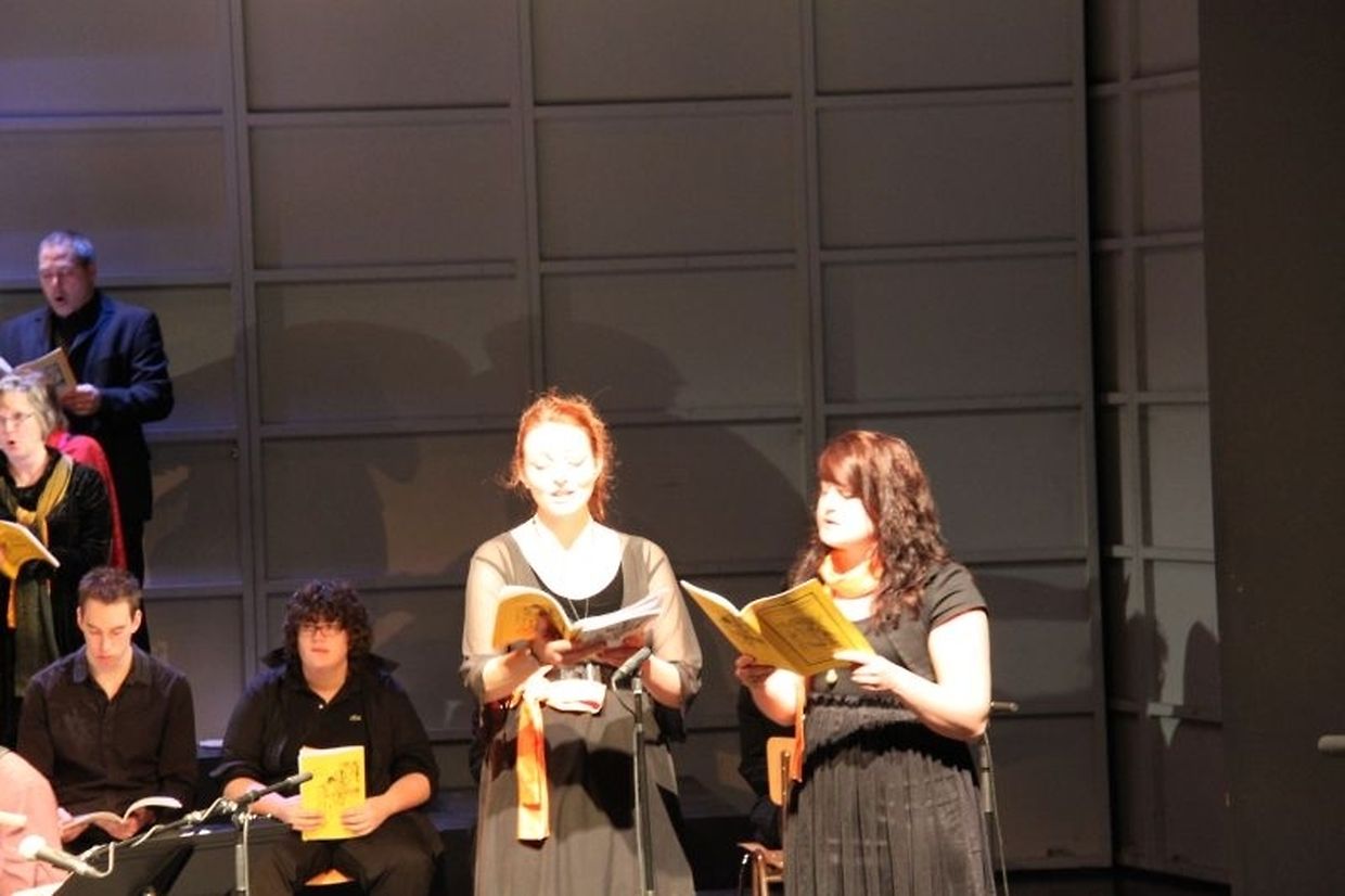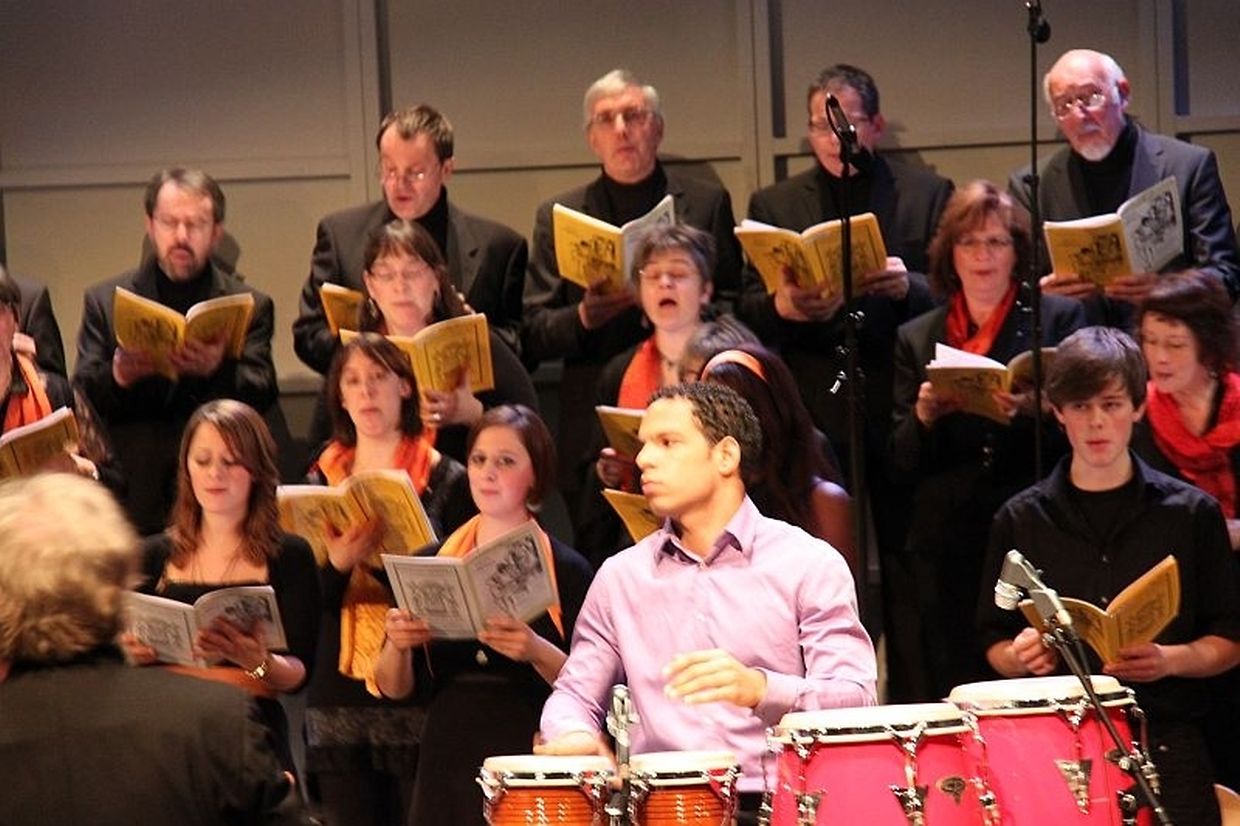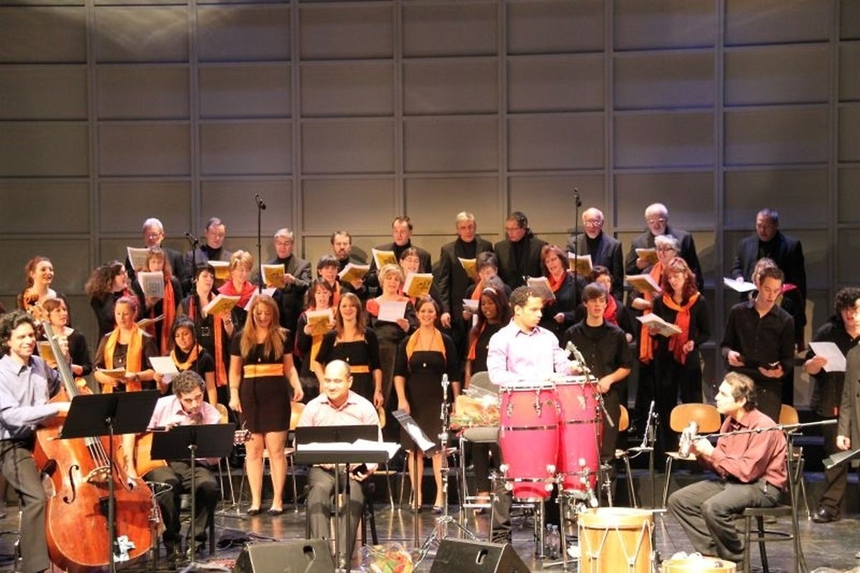 Obwohl das Konzert seit Tagen ausverkauft war, blieben am 19. Dezember im "Cape" in Ettelbrück,wetterbedingt einige Plätze frei. Unter der Leitung von Martin Folz begeisterten die SängerInnen und Musiker mit "Navidad Nuestra" vorgetragen vom Ensemble vocal , den Jeunes qui chantent, dem Chor aktuell und dem Ensemble América Sur die Unentwegten, die trotz massivem Schnee nach Ettelbrück gekommen waren.