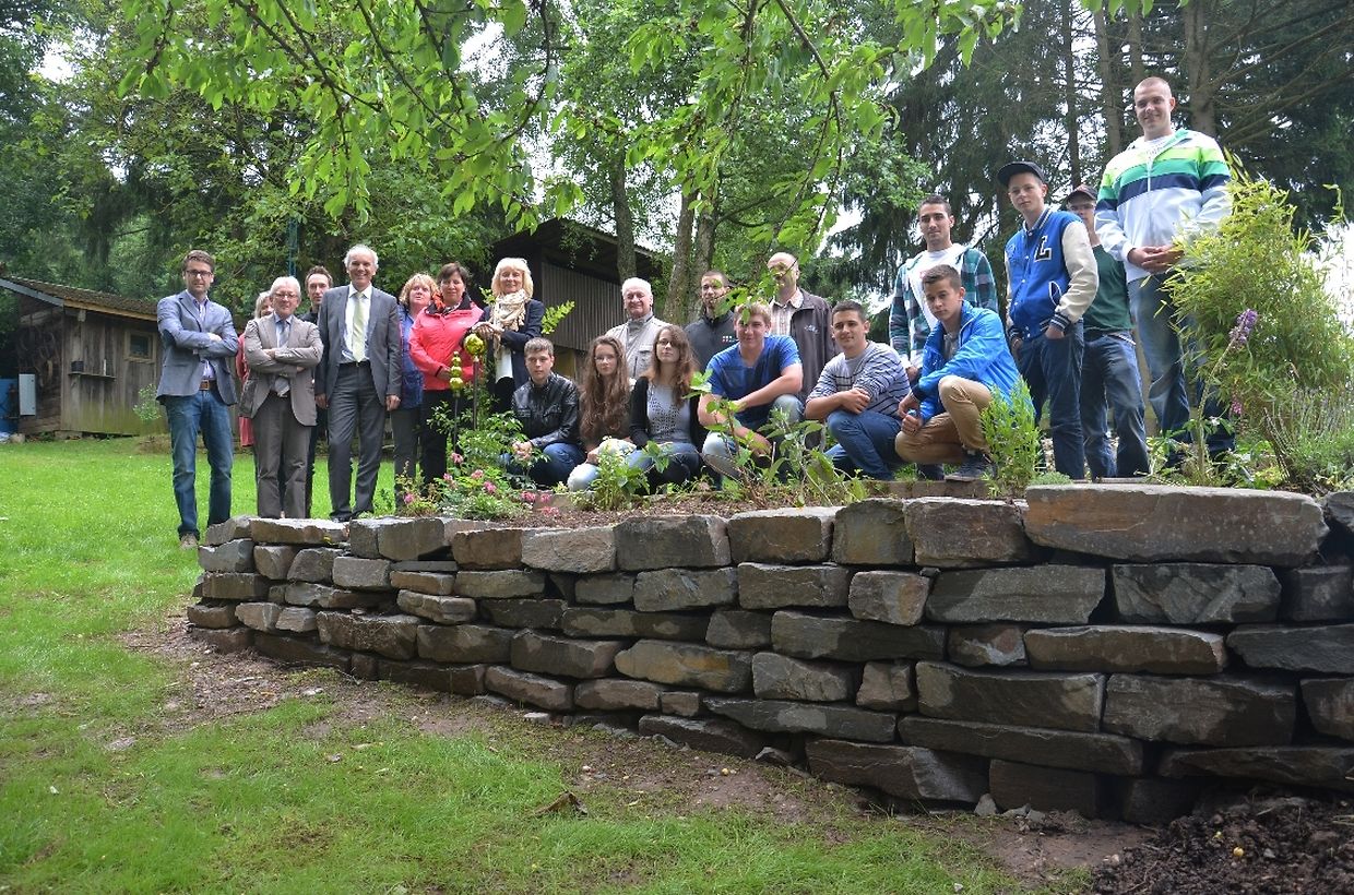 Im Rahmen der regulären Ausbildung zum „opérateur de la forêt et de l’environnement“, belegen die Schüler die Module „Biotoppflege außerhalb und innerhalb der Vegetationsperiode.“ In diesen Modulen wird das theoretische Hintergrundwissen zur Pflege und Erhaltung von Biotopen ausgearbeitet und Projekte werden praktisch durchgeführt. Die Errichtung dieser Trockenmauer war somit Teil der regulären schulischen Ausbildung und hat sich perfekt in die Kampagne „Meng Wiss, meng Blumm & ech“ eingliedert. In einem ähnlichen Zusammenhang wurde in den Wintermonaten bereits eine Streuobstwiese gepflegt.