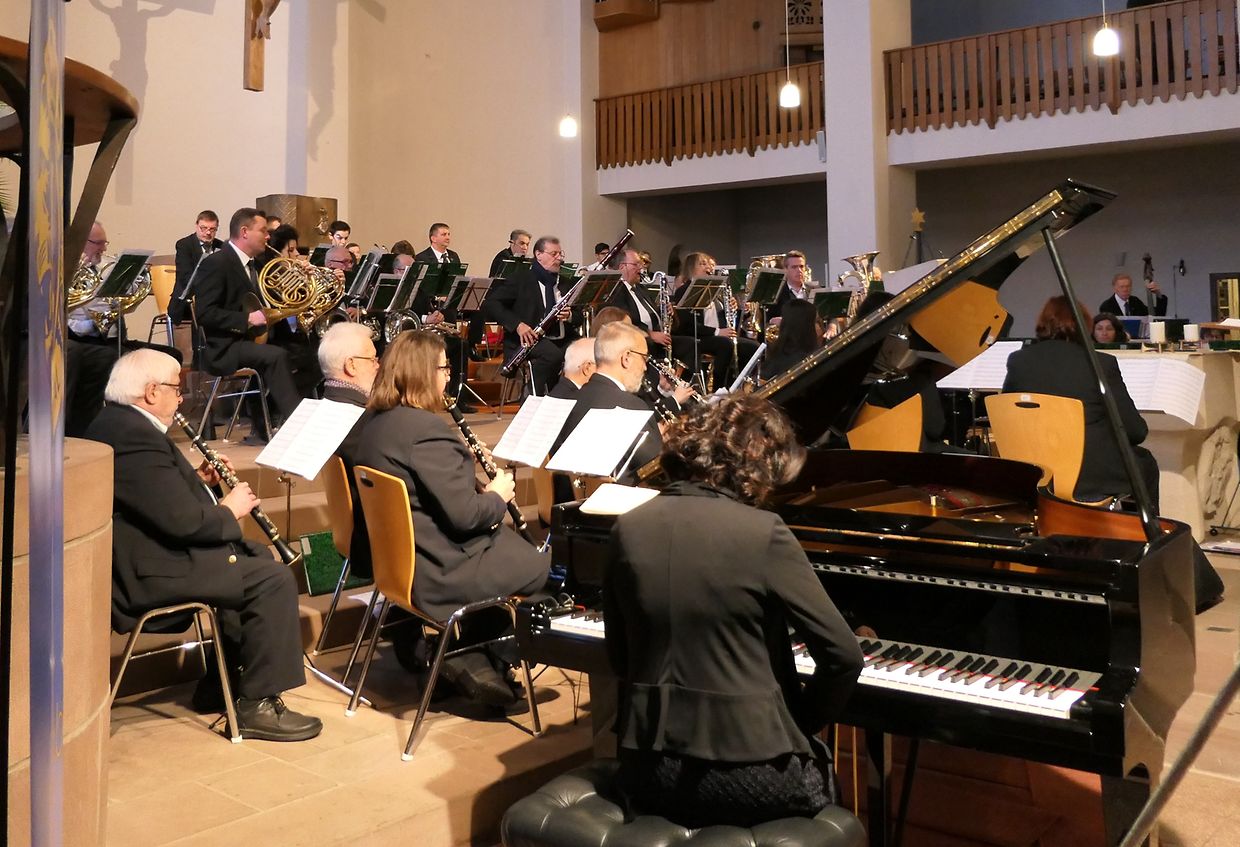 Nach dem anspruchsvollen und begeisternden Winterkonzert im CAPE, bei dem das Harmonieorchester mit „Touche Française“ verschiedene Aspekte der französischen Musikwelt eindrucksvoll beleuchtete, hatte die Ettelbrücker Musikgesellschaft unter der Direktion von Dirigent Rainer Serwe die Gelegenheit ihr Können mit demselben Programm in Wittlich unter Beweis zu stellen, und zwar gelegentlich eines Benefizkonzerts zu dem der Lions Club Wittlich eingeladen hatte. Im Mittelpunkt des Konzerts in der vollbesetzten Pfarrkirche St. Bernhard stand wieder das Klavierkonzert in G Dur von Maurice Ravel, bei dem sowohl das aussergewöhnliche Talent der Solistin Anne-Rose Terebesi bei ihrem Heimspiel als auch die grösste Präzision und Feinfühligkeit des Blasorchesters gefordert waren. Das sehr dankbare Publikum, schon vorher in Stimmung gebracht mit der Ouvertüre „Orpheus in der Unterwelt“ von Jacques Offenbach und dem klangvollen Werk „Hymne à la Musique“ von Serge Lancen, würdigte diese nicht alltägliche Leistung mit lang anhaltendem Applaus. Nach dem Ausflug in das Reich des Musicals mit „Les Misérables“ von C.M. Schönberg war Feststimmung angesagt mit dem schönsten französischen Weihnachtslied „Minuit Chrétien“ in einem bezaubernden Arrangement von Philip Sparke. Zum Schluss der feierlichen und sympathischen Vorstellung, die meisterhaft von Jean-Pol Meis moderiert wurde, verbündeten sich das Orchester und die Zuhörer um deutsche Weihnachtslieder aufzuführen. Am Ende gab es ausschliesslich anerkennende Worte und den herzlichen Dank des Organisators, und die Ettelbrücker Philharmonie hatte bewiesen dass sie ein würdiger kultureller Botschafter im Ausland sein kann. Eine nächste Gelegenheit bietet sich nun Rainer Serwe und seinen Musikanten im Frühjahr 2019 gelegentlich der Konzertreise nach Hamburg.