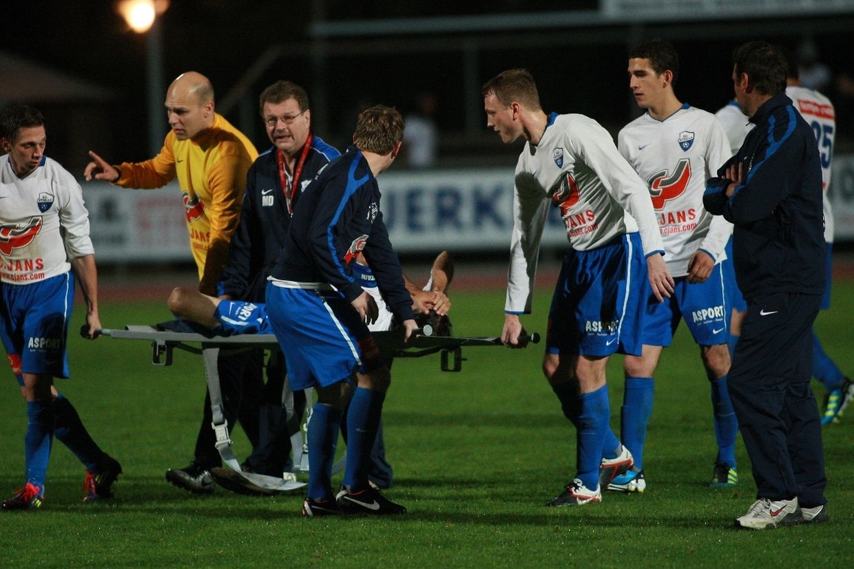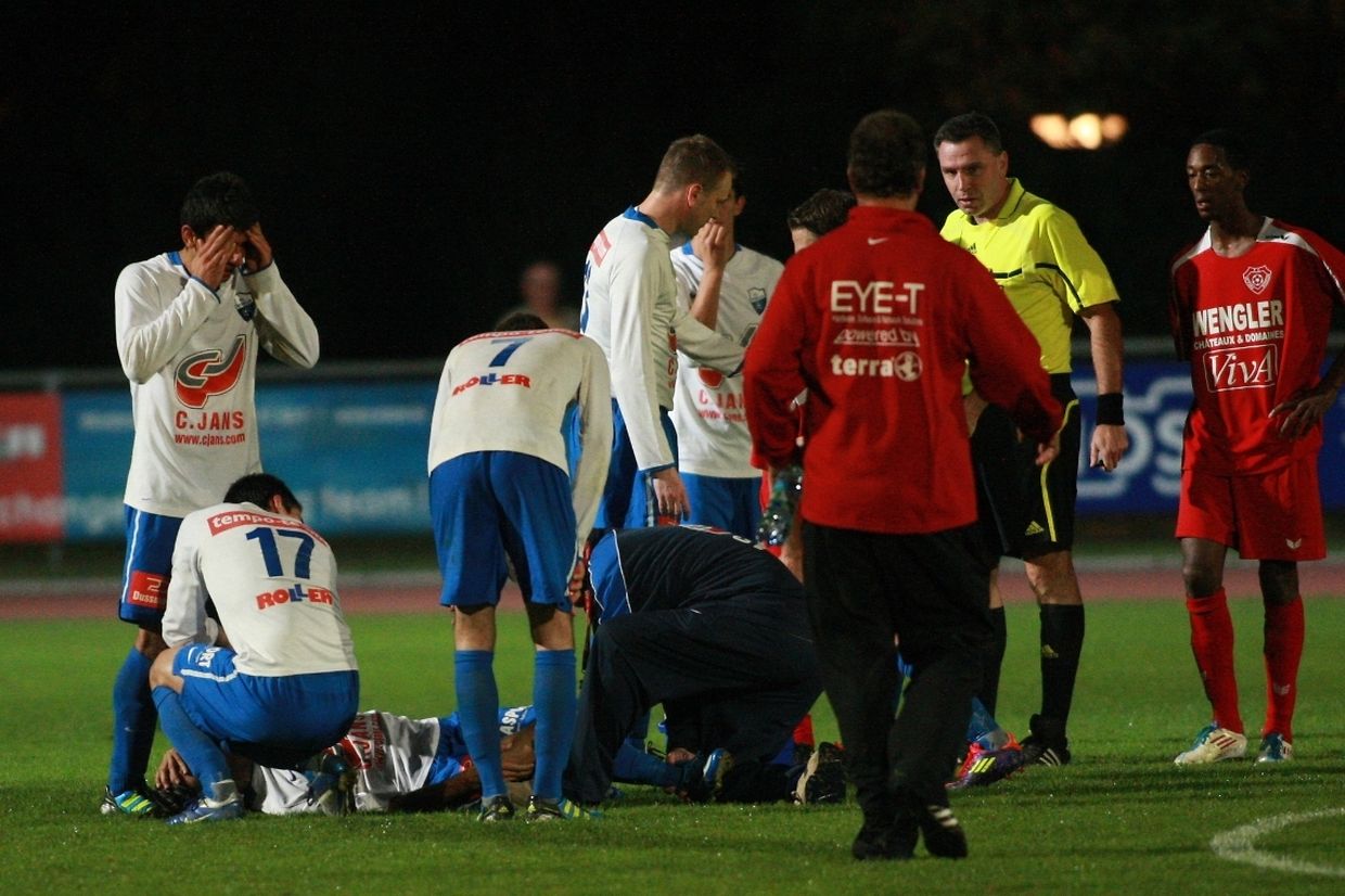 (6-1). C'est le défensseur, Mickael Sarfati qui a ouvert le score sur un corner de André Bastos, les autres buts ont été inscrit par Lopes, Bastos, Barella etTurpel à deux reprise. Tout souriait aux ettelbruck jusqu'à 80e minute. Lorsque le capitaine Ettelbruckois, Carlos Ferreira (Liti), se télescope au sol avec un joueur de Rosport sur une action anodine. Le milieu de terain locale, a été évacué en civière puis en ambulance, vers le CHdn sous les applaudissements du public. Le premier bilan annocé, serait une luxation et d'une fracture du genou droit. L'équipe du FC Etzella sera privé des services de son capitaine pendant une période de trois mois minimum. Souhaitons lui un bon rétablissement.