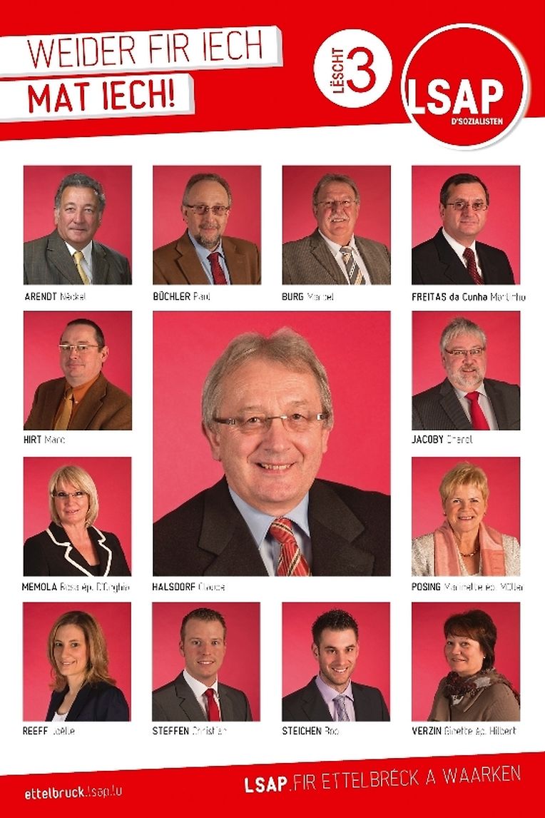 Ettelbruck LSAP Ettelbréck a Waarken LSAP - Ettelbreck-Warken 3 Picture Gallery Please scroll down,to see more pictures. Published on Monday, 19 September, 2011 at 22:16 Weider fir Iech, mat Iech! Äer Kandidaten: HALSDORF Claude/ HIRT Marc / BURG Marcel / MÜLLER-POSING Marinette / STEFFEN Christian / D'ONGHIA MEMOLA Rosa / STEICHEN Bob / JACOBY Charel / REEFF Joelle / BÜCHLER Paul / VERZIN Ginette / ARENDT Néckel / FREITAS DA CUNHA Martinho PP_Ettelbruck_SEPT_BD.pdf 03182_LSAP_CE2011_PlusPunkt_Ettelbreck_BD.pdf Report inappropriate content