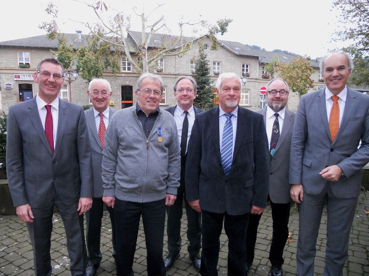 François Flies überbrachte die besten Glückwünsche aus dem Zentralvorstand der UGDA und überreichte anschliessend die Goldmedaille mit Palmette für 40 Jahre Mitgliedschaft an Johny Grohs. Die Medaille en argent Grand-Duc Adolphe für 50 Jahre wird Ed Conzemius bei Gelegenheit der Generalversammlung überreicht werden.