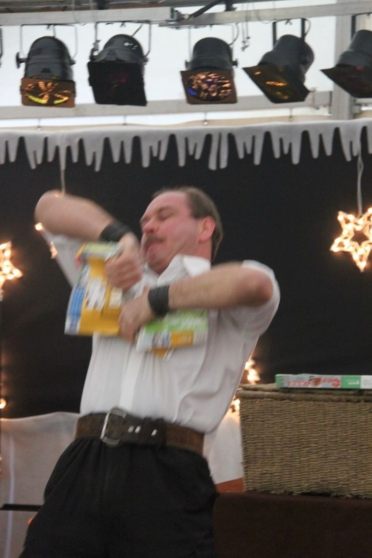 Zimmermannsnägel, Wärmeflaschen und Telefonbücher hatten gegen Christen, der als 23-facher Weltrekordhalter international bekannt ist, kaum eine Chance.
