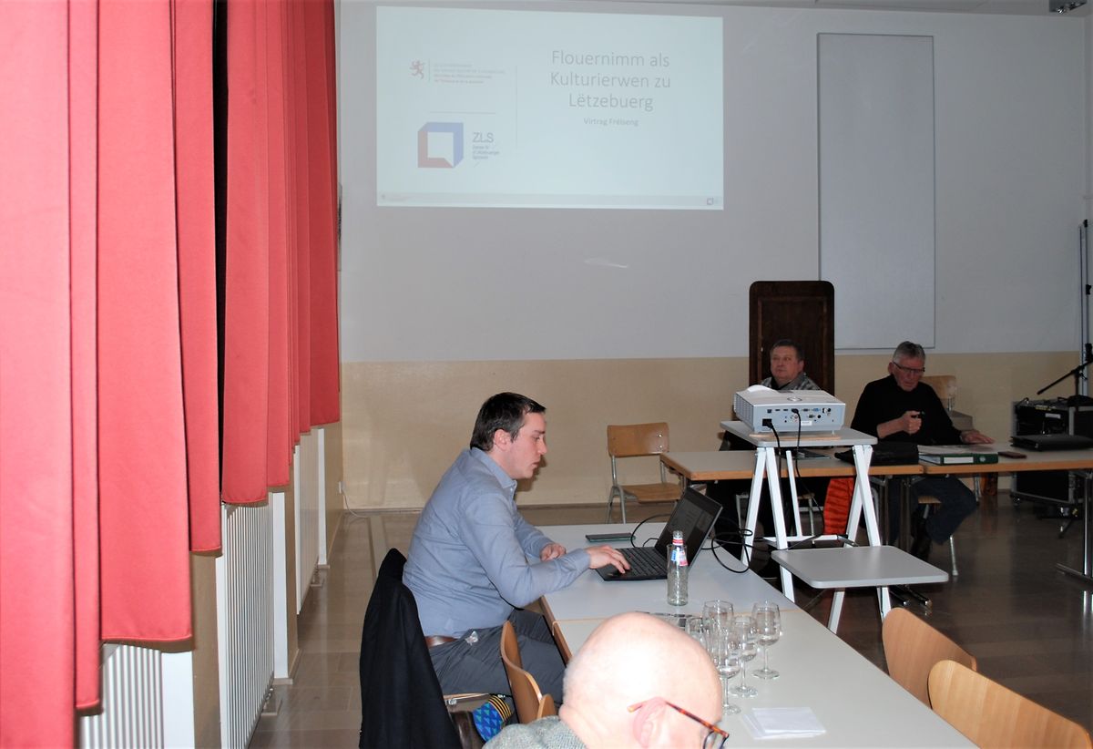 Im Anschluss an die Generalversammlung klärte Dr. Sam Mersch uns in seiner Konferenz „Flouernimm am Allgemengen“ über Flurnamen, ihre Entstehung und Bedeutung, auf.