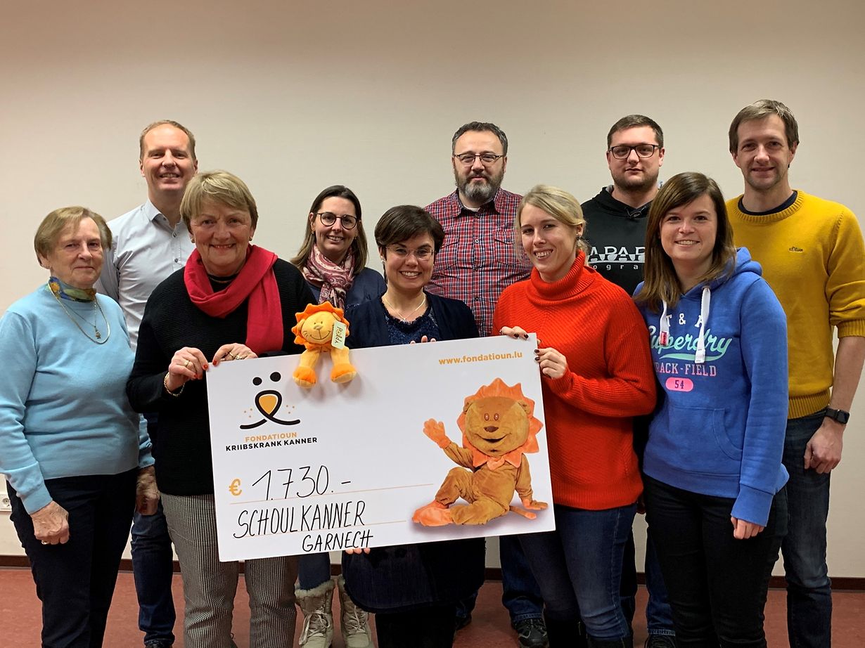 Am Kader vun hirem Summerfest hunn d‘ Garnecher Schoulkanner 2019 den Erléis aus dem Verkaf vun Iessen a Gedrénks un d‘ Fondatioun Kriibskrank Kanner gespent. D‘ Summerfest gëtt all Joers vum Schoulpersonal, der Maison Relais an den Elterevertrieder vu Garnech organiséiert. A verschiddenen Ateliere, vun Intefësche bis Fotobox, konnte sech d‘ Schoulkanner aus de Cyclen 1-4 den 3. Juli ameséieren an den Ofschloss vum Schouljoer 2018-2019 feieren. Bäi dëser Geleeënheet sinn am Ganzen 1730.- € Rescht bliwwen déi integral un Fondatioun gaange sinn.