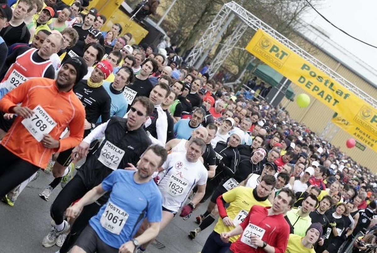 Der wolkenverhangene Himmel und der leichte Nieselregen bis kurz vor dem Start konnten den Enthusiasmus der Läuferinnen und Läufer beim Start in die Straßenlaufsai-son nicht bremsen. Mit 2 450 Startern wurde gesten Sonntag beim 16. „Postlaf“ ein neuer Teilnehmerrekord aufgestellt.