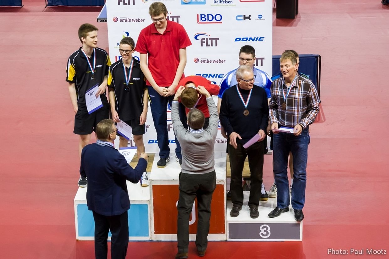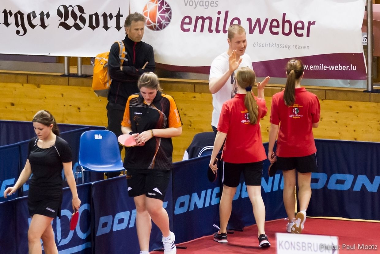 Gonderange DT Gonnereng asbl : Gudd Performance vun eisen Spiller op den Landesmeeschterschaften am Desch-Tennis D.T. Gonderange 34 Picture Gallery Please scroll down,to see more pictures. Published on Tuesday, 4 March, 2014 at 10:45 Felicitatiounen fir déi ganz gudd Resultater vun den Spiller vum DT GONNERENG asbl op den Landesmeeschterschaften am Desch-Tennis leschte Weekend : - Champion Doubbel Hären C : Joé Oberweis an de Sébastien Bonert. - Vize-Champion Doubbel Dammen D : Annick Bonert an d'Isabelle Mootz - Vize-Champion Eenzel Dammen D : Isabelle Mootz - 3. Plaz Eenzel Dammen D : Annick Bonert mei Informationen an Fotoen op " www.dtgonnereng.net " Report inappropriate content More news by D.T. Gonderange > Lënster: Grousse Succès fir den italienëschen Owend vum D.T. Gonnereng 03/11/12 Junglinster 23e Tournoi individuel du DT Gonnereng 01/12/10 Gonderange
