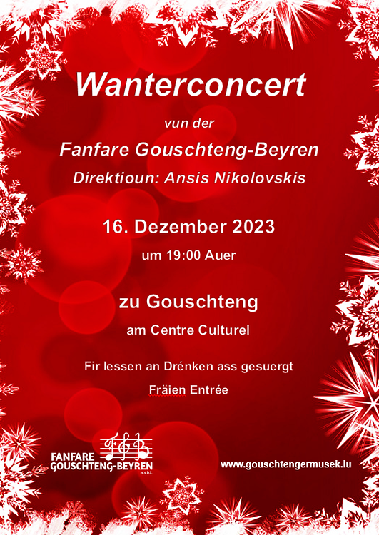 D'Fanfare Gouschteng-Beyren invitéiert ob hire Wanterconcert ënnert der Direktioun vum Ansis Nikolovskis