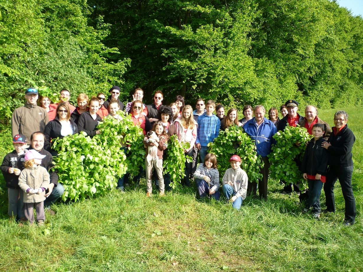 Wéi all Joer hunn sech d’Musikanten an d’Memberen vun der Greiweldenger Musek och op dësem 1. Mee fréi moies um Greiweldenger Wëngertsbierg getraff, fir de Meekranz ze maachen.