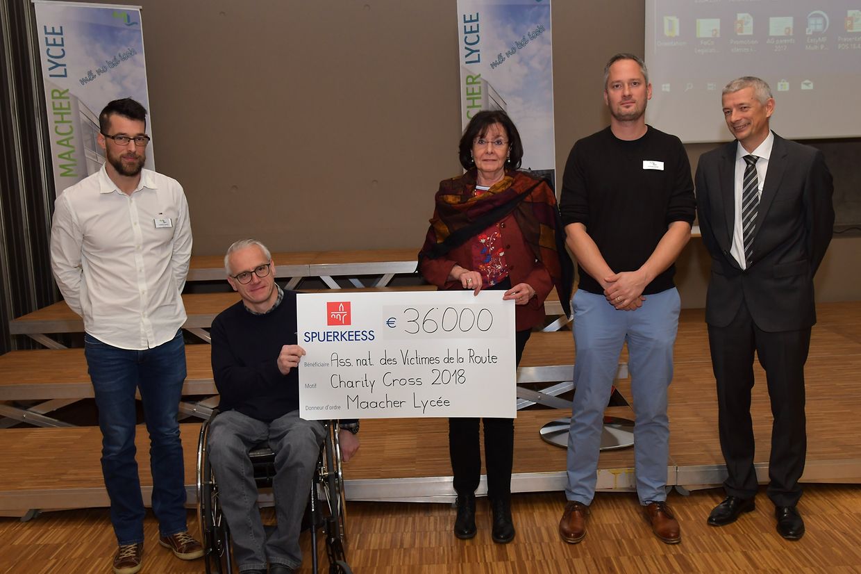 Mit besonderem Stolz erfüllt die gesamte Schulgemeinschaft des Maacher Lycée, dass die Aktion Charity Cross, die im Jahr 2001 als kleines Schülerprojekt ihren Anfang fand, mittlerweile weit mehr als eine Million an Spendengeldern eingebracht hat und sich jedes Jahr sehr großer Beliebtheit und regen Zulaufs erfreut. Ein großer Dank gilt allen Beteiligten und Sponsoren, die diese Erfolgsstory über die Jahre hinweg ermöglicht haben und jedes Jahr auf ein Neues dazu beitragen, weniger Begünstigten zu helfen und sie zu unterstützen.