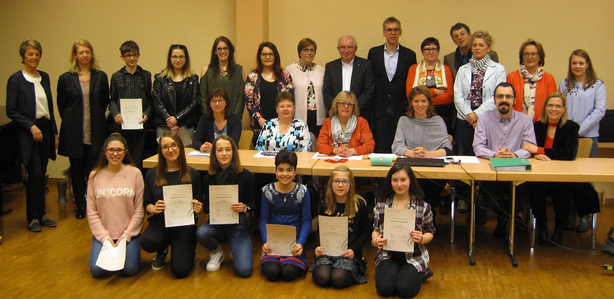 Die Muselfénkelcher organisierten auch im vergangenen Jahr, wie in den Jahren zuvor, das Volksfest zum Nationalfeiertag auf dem Maacher Marktplatz. Zum Jahresende gab der Kinder- und Jugendchor wie üblich auch wieder das traditionelle Konzert „Chrëstuucht“ im Centre Culturel, erstmals mit zwei Dirigentinnen, denn mit Marianne Hengel ist im letzten Jahr erstmals eine zweite Dirigentin für den Kinderchor engagiert worden. Christiane Urwald dankte auch der Dirigentin des Jugendchores, Nathalie Laurent, für ihre ausgezeichneten Resultate im vergangenen Jahr. Einen weniger positiven Bericht gab der Kassenwart des Chores Guy Hengel, denn das Jahr wurde mit einem Defizit abgeschlossen, das der Islandreise zu verdanken ist. Das Defizit konnte jedoch durch die erfolgreicheren vorhergegangenen Jahre ausgeglichen werden. Nach einem Grußwort von Bürgermeister Leon Gloden, erfolgte die Verleihung der Diplome durch die UGDA. Eine Urkunde für fünfjähriges Engagement erhielten Lynn Asselborn, Anna Falkenberg, Kira Hengel und Bodo Bost. Eine Verdienstmedaille für 10 jähriges Engagement im Sinne des Gesanges erhielten Elena Demuth, Sarah Duhr, Sylvie Konsbruck, Christian Metzger, Jonas Pinkowski, Melanie Ruppert und Liliana Vidigal Serra, und für 30 Jahre erhielt Marianne Hengel eine Verdienstmedaille.