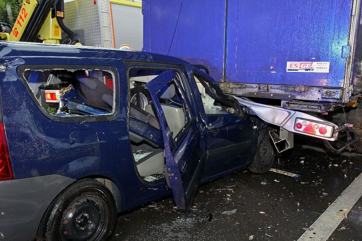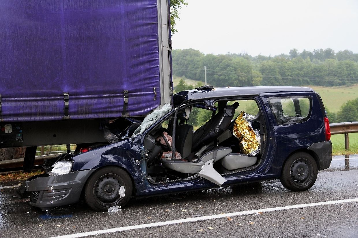 Ein Lastwagenfahrer, der aus Richtung Grevenmacher kam, wollte an der Kreuzung nach Oberdonven nach links abbiegen, musste jedoch wegen Gegenverkehr auf der Fahrbahn anhalten. Aus bisher noch unbekannter Ursache fuhr ein nachfolgender Autofahrer fast ungebremst auf das Heck des stehenden Lastwagens auf und bohrte sich unter diesen. Der Fahrer, alleiniger Insasse, wurde dabei lebensgefährlich verletzt und in seinem Wagen eingeklemmt. Er musste in einer 20-minütigen Rettungsaktion mit schwerem hydraulischem Material aus seiner misslichen Lage gerettet werden. Nach einer Erstversorgung vor Ort durch den Notarzt wurde der Fahrer in die Zithaklinik eingeliefert. Der Fahrer des Lastwagens kam mit dem Schrecken davon. Während der Dauer der Bergungsarbeiten und der Unfallaufnahme musste die Strecke zwischen Grevenmacher und Potaschberg für den Verkehr gesperrt werden.