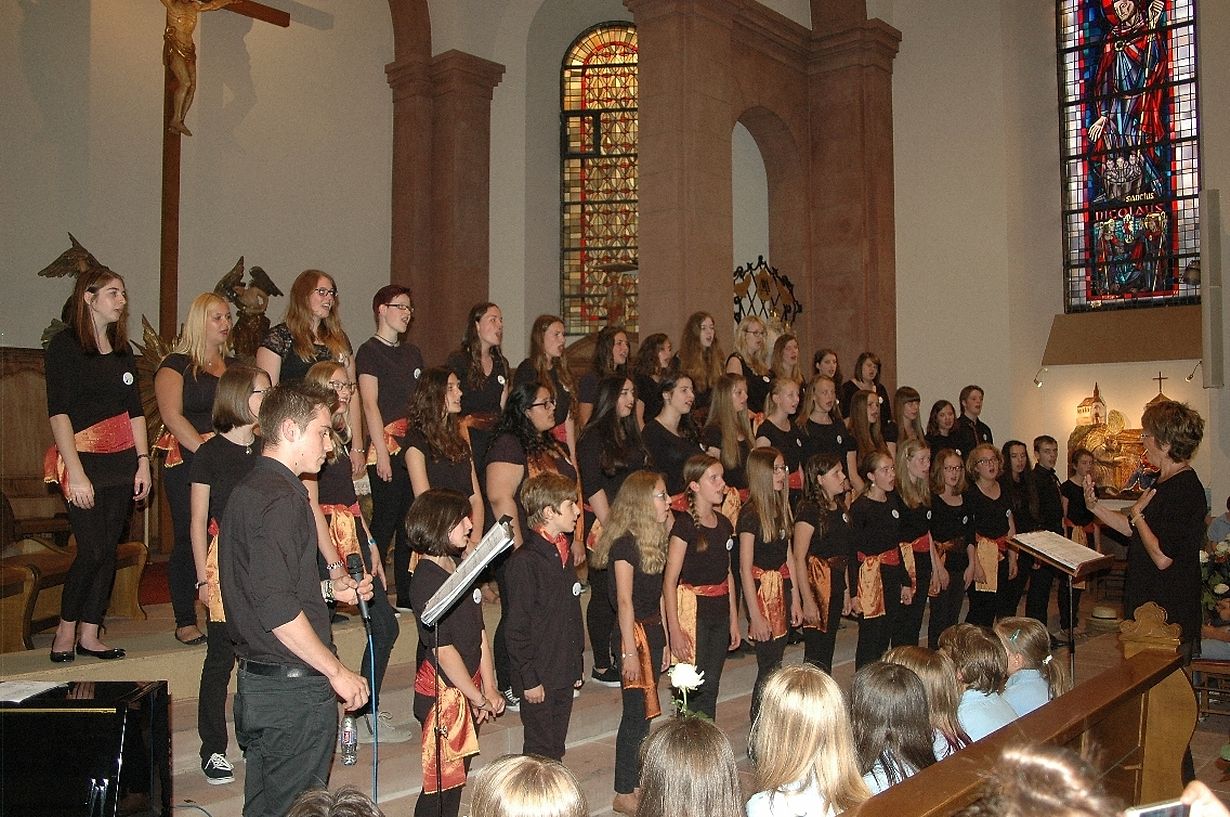 Ueber ein volles Haus konnten sich die Muselfénkelcher vor kurzem bei ihrem Konzert "Fêtons la Musique!" in der Grevenmacher Dekanatskirche freuen. Unter den zahlreich erschienenen Zuhörern konnte Vizepresidentin Christiane Schiltz-Urwald Dechant Claude Bache, den Abgeordneten und Bürgermeister Léon Gloden, Schöffin Monique Hermes, den Gemeinderat Marc Schiltz und UGDA-Vertreter Raymond Peters begrüßen. Unter der sehr präzisen Leitung von Adely Urwald-Krier und begleitet von Georges Urwald am Klavier und Constantin Raducu am Schlagzeug sorgte der Kinderchor mit Liedern wie "Kirmes am Bësch", "Compère Guilleri" oder "Io mi sono un poveretto" für einen klangvollen Beginn, bevor der Jugendchor mit schwungvollen, aber auch sehr gefühlvoll vorgetragenen Liedern wie "One", "Cerf-volant" oder "Coming Home" sein Können wiederum unter Beweis zu stellen wusste. Beeindruckend waren die Soloparts von den Solisten Sophie Rasmussen, Nura Kaber, Shannon Barbier, Tamara Halldorsdottir und Louis Caloin. Beide Chöre wurden mit großem Beifall belohnt.