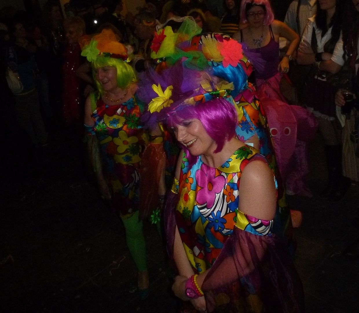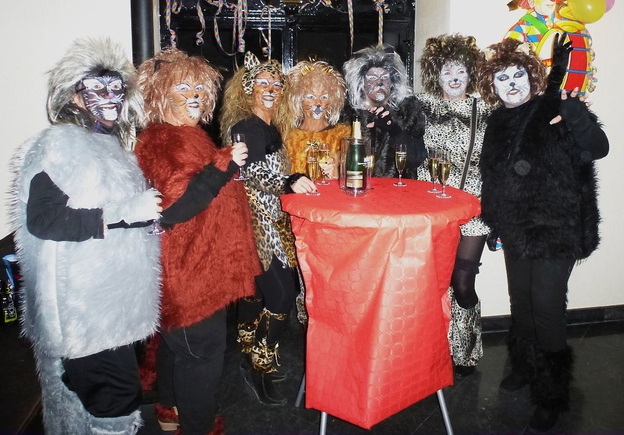 Der Gewinner des dritten Preises in Höhe von 75 € war eine Gruppe knallbunter Popart-Damen, deren fröhliche Farbkombi automatisch gute Laune verbreitete. Der zweite Preis in Höhe von 125 € ging an zwei phantasievoll kostümierte Weinrebenhexen mit intergrierter Hutbeleuchtung. Und der erste Preis in Höhe von 175 € ging definitiv verdient an eine Gruppe flotter Kätzchen, die so toll geschminkt waren, dass man meinte, sie seien aus dem Musical CATs entsprungen.