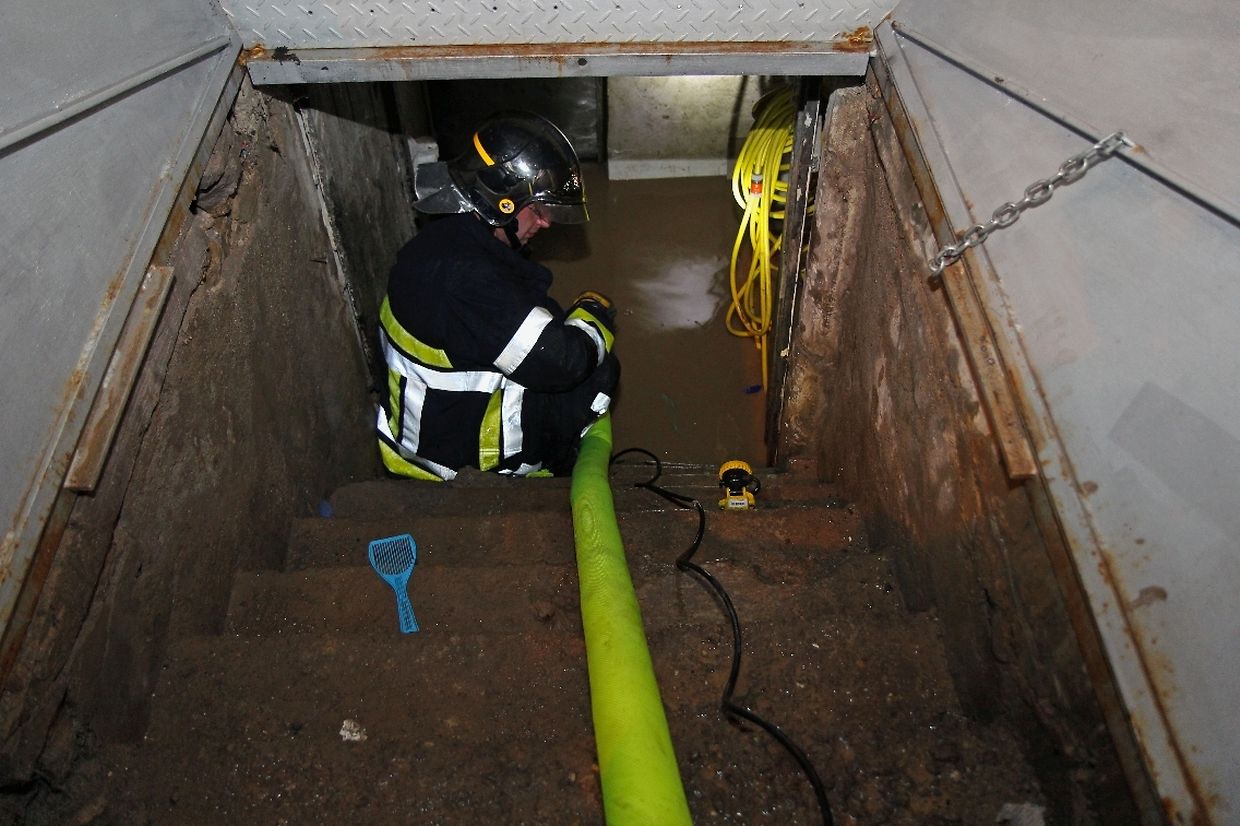 Weniger glimpflich verlief ein Zwischenfall in Grevenmacher als ein Baum und Baumreste einen Abfluss in Höhe der Rue Syr blockierten. Die Verstopfte Kanalisation wurde derart verschlossen, dass das Wasser über den Kanal schoss und sich durch die Rue Syr und die Rue de l’Eglise durchbahnte und etliche Keller dort unter Wasser stellte. Insgesamt musste hier während mehrerer Stunden insgesamt 10 vollgelaufene Keller ausgepumpt werden. Teilweise stand das Wasser über einen Meter hoch in den Kellern.