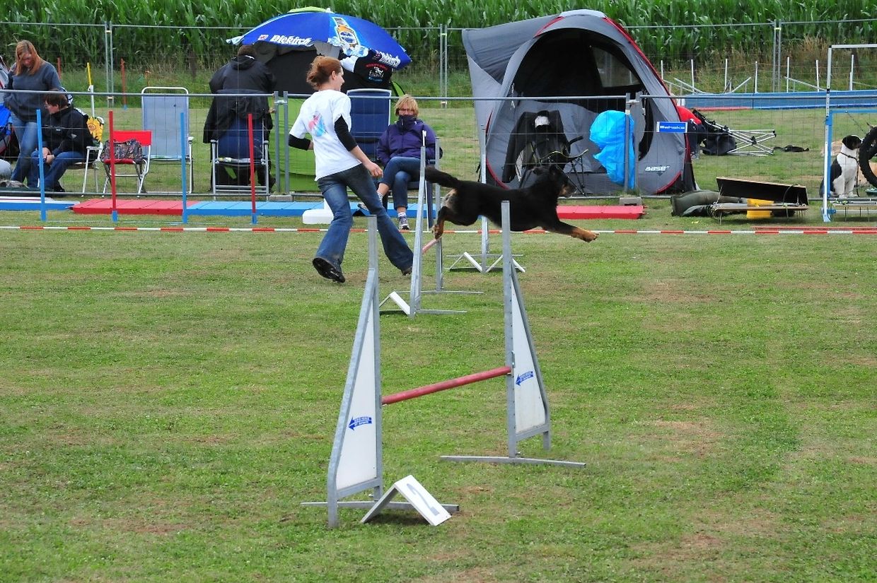 Agility heißt soviel wie Beweglichkeit und ist eine Disziplin, die für alle Hunde offen ist. Sie besteht darin, die Hunde verschiedene Hindernisse überwinden zu lassen, mit der Absicht, ihre Gewandtheit zu erproben. Agilitiy setzt eine hervorragende partnerschaftliche Beziehung zwischen Führer und Hund voraus, die ein Team bilden müssen. Im April 2007 wurde der „ Agilitysport Grosbous“ gegründet, dem sich seither rund 75 Mitglieder angeschlossen haben, um sich gemeinsam ihrem Hobby, dem Hundesport zu widmen. Umso schöner für den noch relativ jungen Verein, dass auch der vierte Versuch, einen Wettbewerb mit der Teilnahme nationaler sowie auch ausländischer Hundevereine zu veranstalten, erneut vom Erfolg gekrönt war. Nicht weniger als 140 Hundebesitzer hatten sich am Sonntag zur Austragung des Turniers auf dem Trainingsfeld in Grosbous eingeschrieben. Der Wettbewerb war aufgeteilt in den Kategorien Agility und Jumping, ausgetragen in den Sparten „ small“, „ medium“ und „ large“. Auf dem vorgeschriebenen Parcours musste jeder Vierbeiner die Strecke mit verschiedenen Hindernissen in der bestmöglichen Zeit durchlaufen. Bei der anschließenden Preisverleihung, dankte Präsidentin Romaine Noé, allen Teilnehmern, Helfern und Sponsoren für das gute Gelingen dieses Hundewettbewerbes. Dank galt ebenso den Richtern Nathalie Will und Romain Stein für ihre exakten Bewertungen. Lob und Anerkennung zollte sodann Bürgermeister Nico Simon dem lokalen Hundesportverein für die perfekte Organisation dieses Turniers in der Gemeinde Grosbous und unterstrich die rege Teilnahme von Jugendlichen die sich dem Hundesport widmen. Im Anschluss folgte die Pokalverteilung an folgende Gewinner: Kategorie Agility: Steichen Danièle, Tessy Reuland und Diana Schinkus (Sparte L1); Wolfgang Bossmann und Valérie Gindt (M1); Martine Wagner, Laura Hastert und Monique Marlair (S1). Ginette Clees, Gilles Hentges und Tessy Reulend(L2); Marly Mergen und Jeff Feyder (M2); Véronique Weffling, Erny Clees und Jos Arens(S2); Daniel Feyder, Anna Winkel und Pia Schlottert(L3); Véronique Weffling(M3); Carole Winandy und Raymond Rossi (S3); Paul Kurzen, Anna Winkel und Kathy Pach ( A&M). Kategorie: Jumping: Servais Mergen, Monika Tavan und Josée Müller (L1); Guy Steffen, Gilles Hentges und Nathalie Nipperts(M1);Monique Marlair, Lara Hastert und Martine Wagner (S1); Gilles Hentges, Ginette Clees und Nadine Schaul(L2); Jeff Feyder und Marly Mergen M2); Véronique Weffling, Tania Reiffers und Erny Clees( S2);Nathalie Will, Raymond Rossi und Anna Winkel (L3); Véronique Weffling (M3); Raymond Rossi und Carole Winandy (S3 ); Carole Winandy, Michèle Clees und Conny Kohnen (A&M). ( FOTOS: CHARLES REISER)www.agilitysport.jimdo.com)