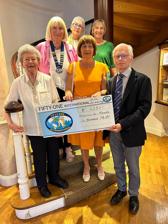 Im Rahmen einer Konferenz, welche von Dr. Bernard THILL, aktueller Präsident von „Médecins du Monde“, im Cercle MÜNSTER an die Mitglieder des Fifity-One Ladies Luxembourg , unter ihnen zahlreiche Gäste und Mitglieder anderer CLUBS Men des Fifty-One, richtete, wurde am 14. Juni 2023 ein Scheck über 3.551€ an Dr. Bernard Thill überreicht, um ihm damit Anerkennung zu zollen für seine unermüdliche Arbeit für „Médecins du Monde“ und um diese wertvolle Initiative zu unterstützen.