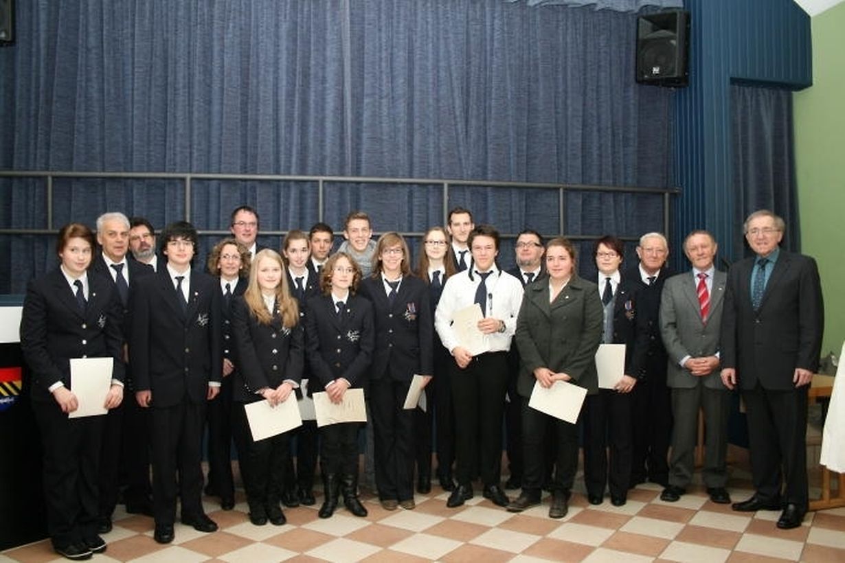 Im Festsaal von Harlingen dankte Jean-Pierre Kass, Präsident des Musikvereins, allen, die sich der Musik verschrieben haben und hob das eindrucksvolle Weihnachtskonzert hervor, das gemeinsam mit dem Chor der Stauseegemeinde in der Kirche von Harlingen dargeboten wurde. Er beglückwünschte die Musikanten, die wegen ihrer langjährigen Treue zur „Harmonie Harlingen“ ausgezeichnet wurden.