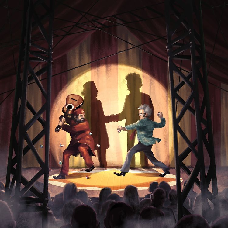 Am Mëttelpunkt vum Programm stinn déi weltbescht a weltwäit eemoleg Lidder vum Serge a senger Band. Et wär also eppes wéi e gemittleche Concert an engem flotte Kader, wann do net de Meeschter vum Haus (oder vum Zelt) wär, den Zirkusdirekter, de Showmaster, den MC, de weltwäit eemolegen a weltbeschten Jonn Happi. Wëll hien de Museker d'Show klauen? Oder sinn et d'Museker, déi hien an de Schied setze wëllen? Et entsteet e Spannungsfeld tëscht de Kënschtler an den Disziplinnen: Musek, Kaméidi, Jonglerie, Slapstick, Zirkuskonscht, Cabaret… De Publikum gëtt, ob e wëll oder net, mat eragezunn a muss selwer entscheeden, ob et fir ze laachen, oder fir ze kräischen ass.