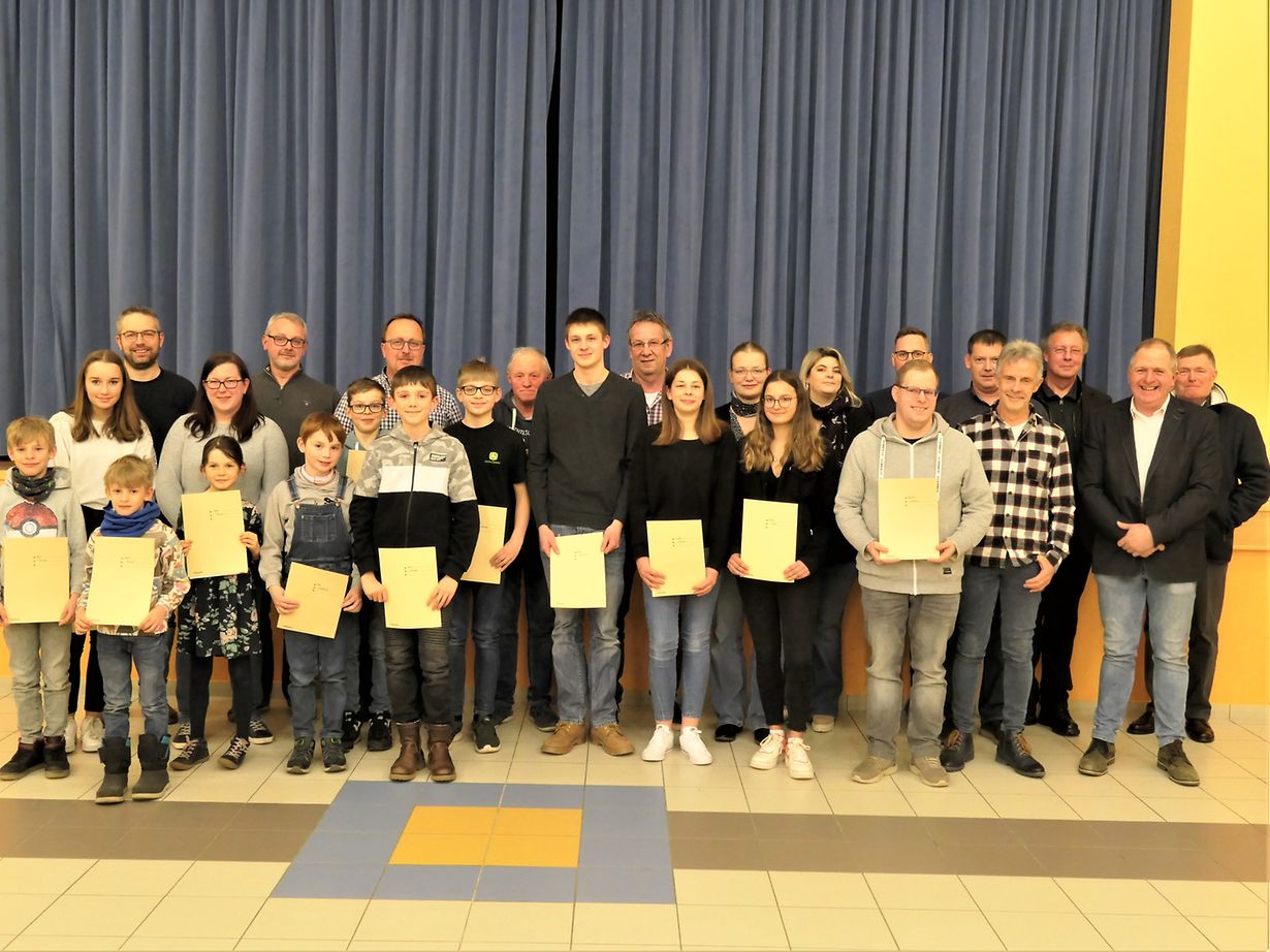 Gemeinsam mit Präsident Roland Spaus, der Jugendbeauftragten des Vereins, Melanie Kesseler-Faber, sowie den Gemeindevertretern Raymond Beffort und Georges Keipes war es dem Vorsitzenden der Clerfer UGDA-Musikschule, Jean-Paul Reitz, so auch eine Freude, zum Abschluss 31 Diplome für folgende lokale Musikschüler zu überreichen: Svea De Bondt, Fiona Ernst, Marvin Ernst, Jayden Evora, Ann Hermes, Luc Hermes, Nadine Hermes-Beffort, Joshua Jank, Lou Kayer, Théid Kayser, Anne Kirtz, Sandy Kirtz, Margot Kneip, Nicolas Kneip, Leo Kremer, Alex Lamberty, Daniel Lamesch, Nic Lanners, Ben Linckels, Claire Linckels, Pol Linckels, Goncalo Martins Reis, Mex Poirrier, Sam Poirrier, Philippe Recken, Svea Recken, Monique Rossler, Len Schanck, Dan Zeimes und Ean Zenner. (jl)