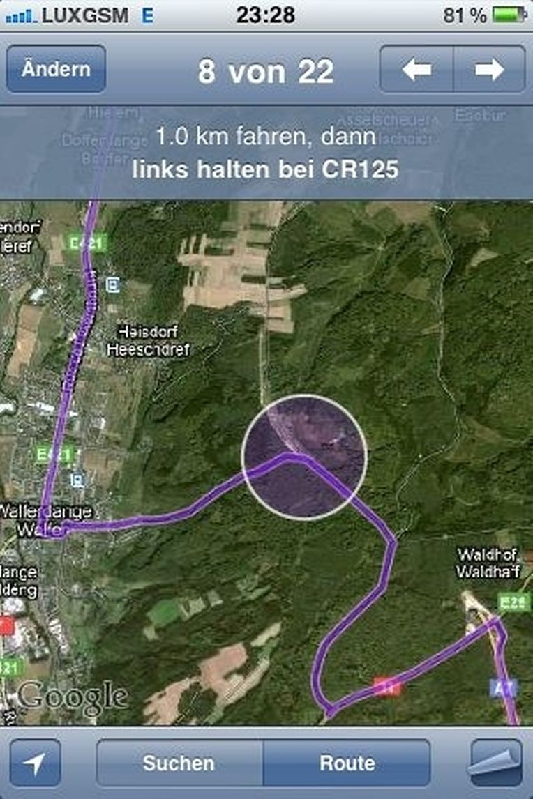 Etwas besonderes findet man bei der Routenbeschreibung bei Google-Maps. Gibt man die Route mit den Daten: