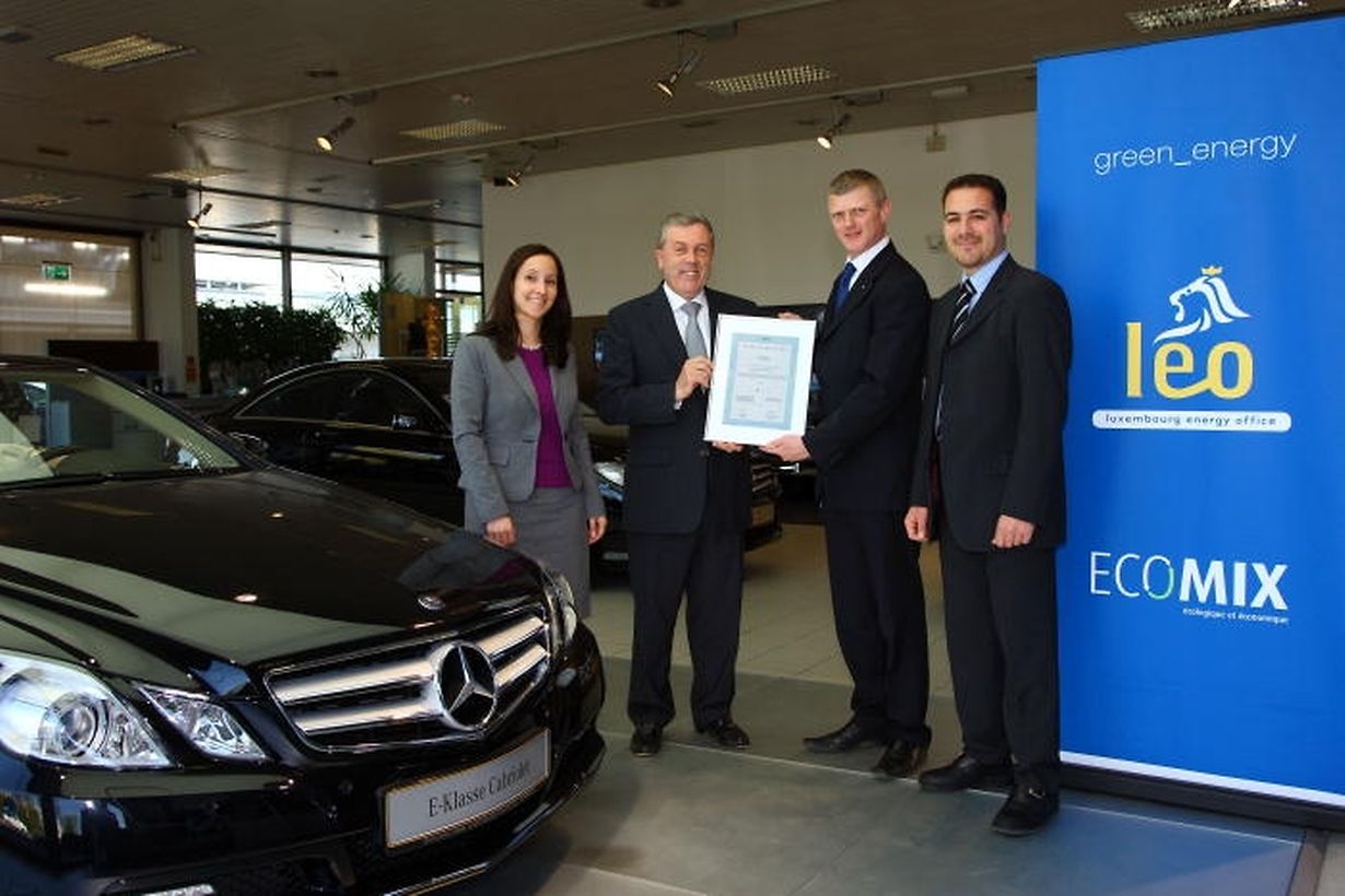 Vor kurzem überreichte Jean-Paul Wagner, administrateur délégué der Leo S.A. das Ecomix Zertifikat an Generaldirektor Justin Mangen, der das Zertifikat stellvertretend für die Mercedes-Benz Luxembourg S.A. entgegennahm. Es handelt sich um 100 % Wasserkraftzertifikate, die von der Organisation RECS International, einem anerkannten System für den Kauf und Verkauf von elektrischen Einheiten aus erneuerbaren Energiequellen, stammen.