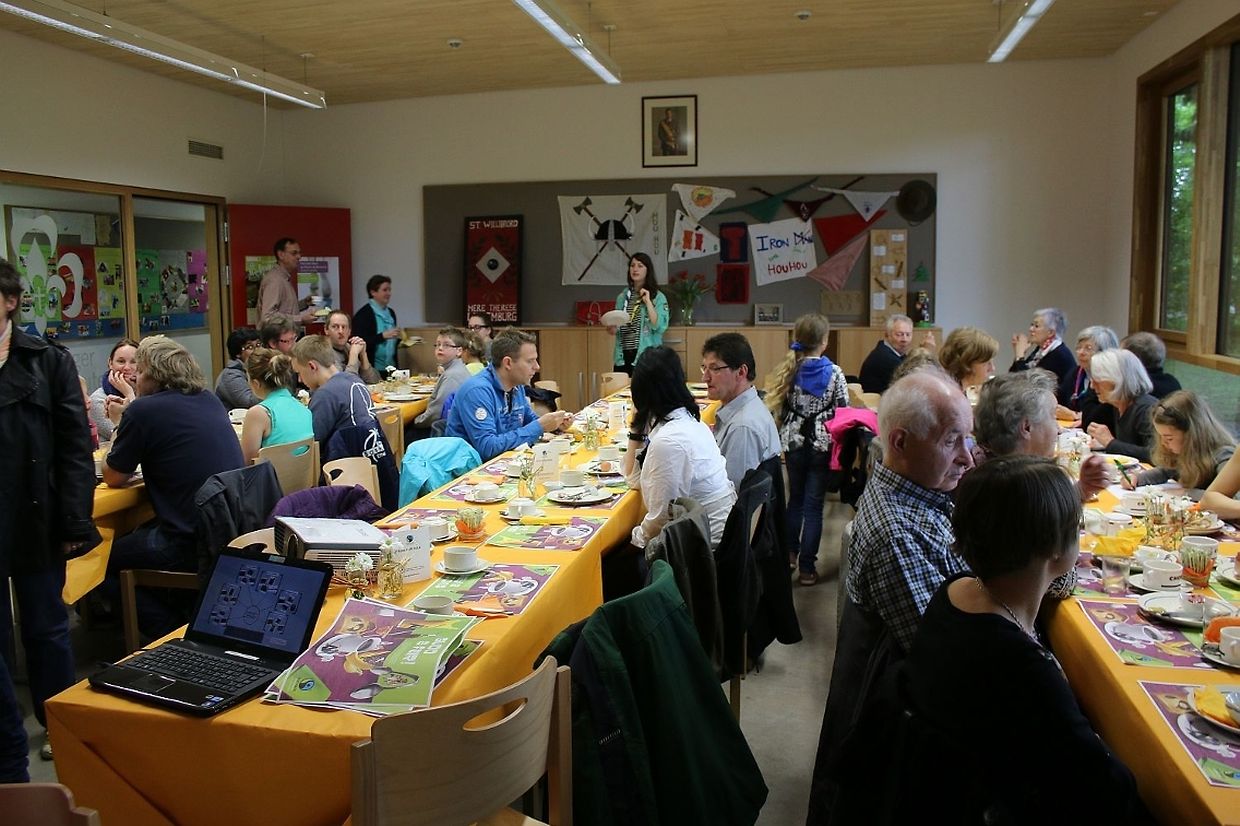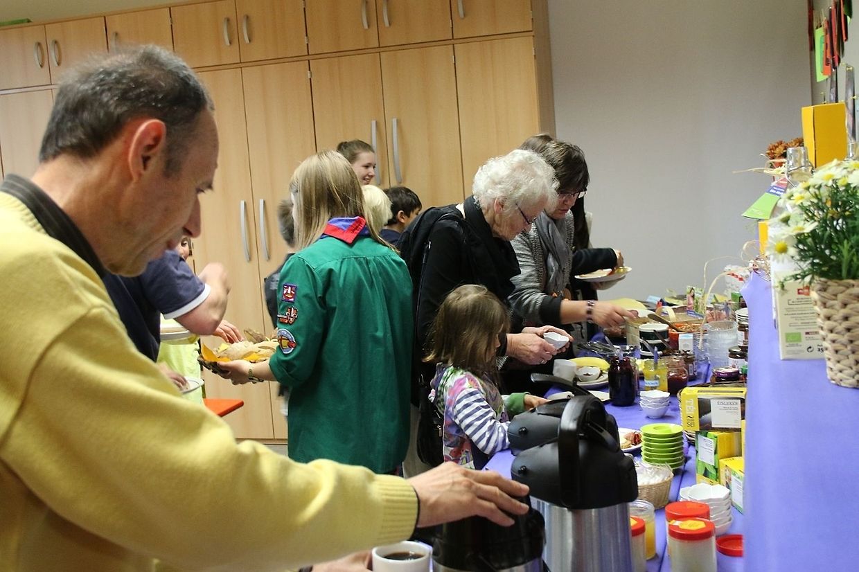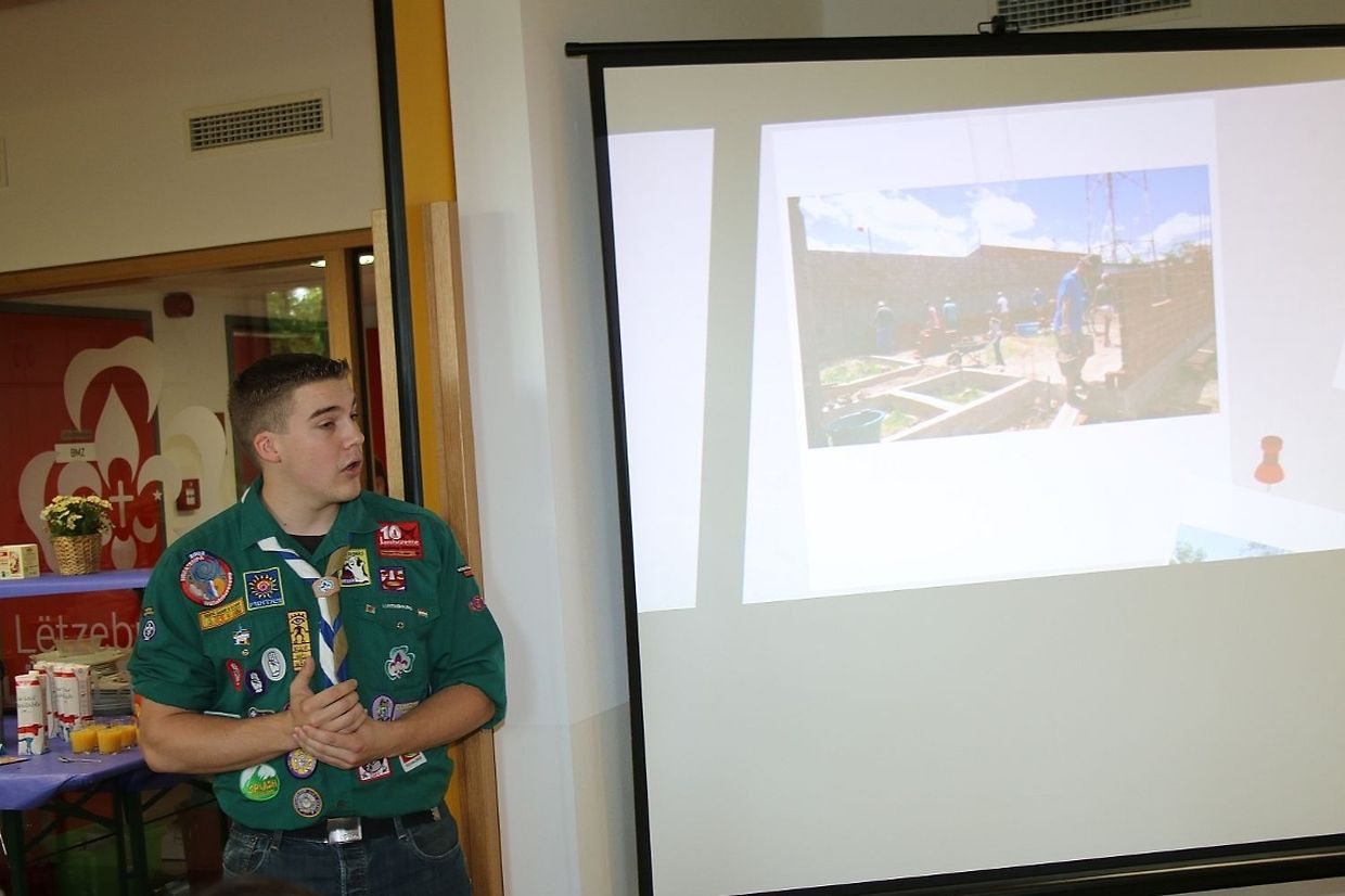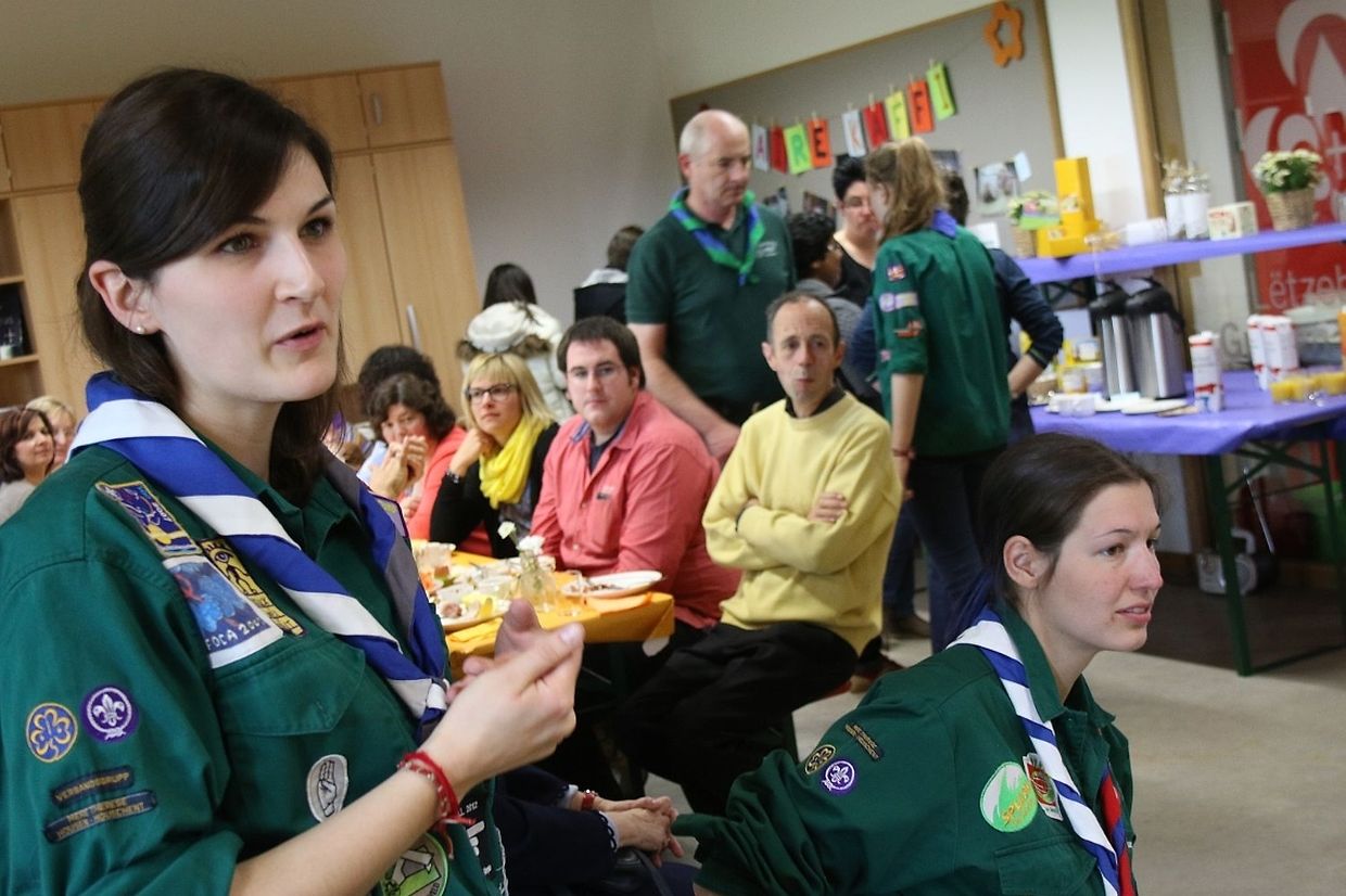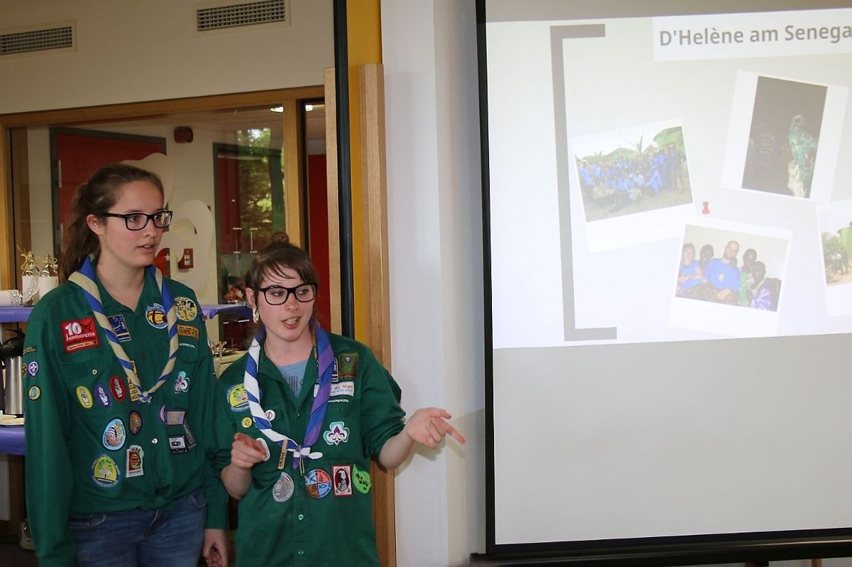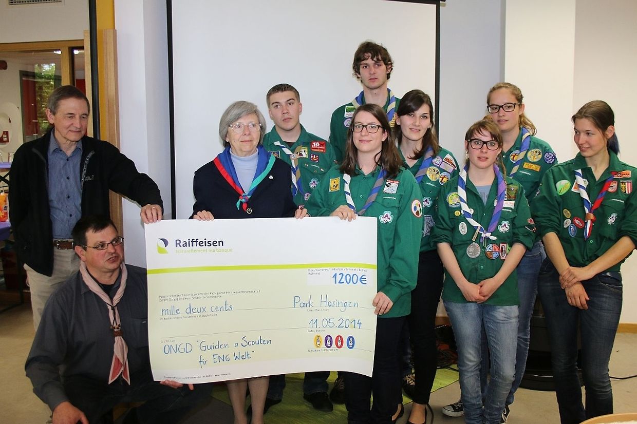 Im Rahmen ihrer Aktion ,,Faire Kaffi'' die die ,,Housen-Houschenter Guiden a Scouten'' kürzlich mit großem Erfolg in ihrem ,,Chalet'' organisiert hatten überreichten sie, in Anwesenheit des Vertreters des Pfarrverbandes Marcel Scheidweiler, einen Scheck über 1 200 Euro an die Vertreterin der ,,ONGD Guiden a Scouten fir eng Welt'' Marie-Anne Werner. Der Erlös stammt aus der Zusammenarbeit mit dem Pfarrverband Hosingen-Hoscheid anlässlich des Pfarrfestes.
