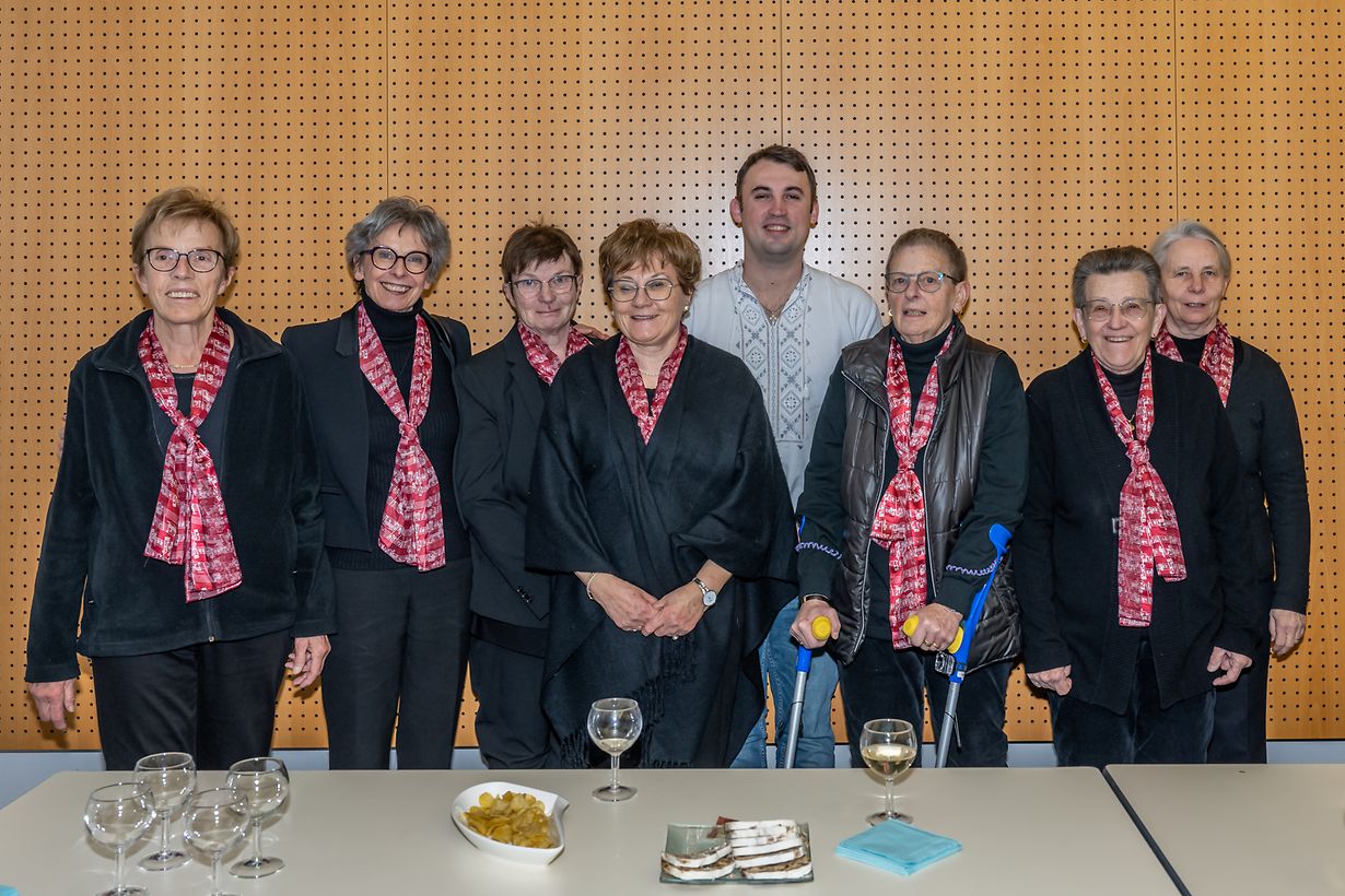 D’Quête war fir e Projet éducatif vun der Associatioun LUkraine, Ecole Mriya, duerfir huet e Grupp ukrainesch Kanner niwt der Ukrainescher Nationalhymn nach e Lidd gesongen. Mir konten dem Här Zharov e Scheck vun 2.600 € iwerreechen.