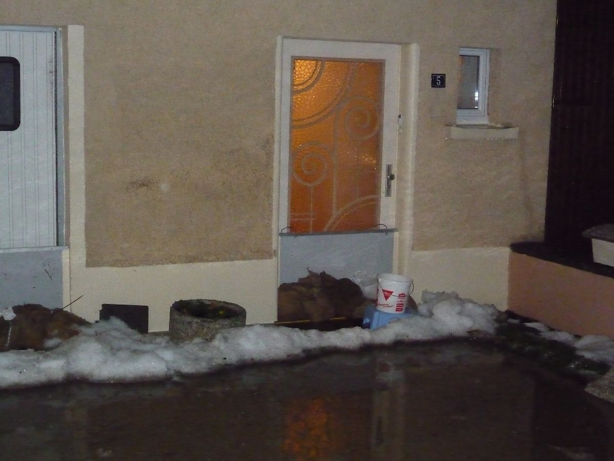 E grousse Schued entstung am Restaurant "de Pefferkär", wou d'Kichen iwerschwemmt war. Hei gouf während e puer Stonnen versicht, d'Waasser ofzepompelen. Besonnesch betraff waren och d'rue du Ruisseau an d'rue du Moulin.