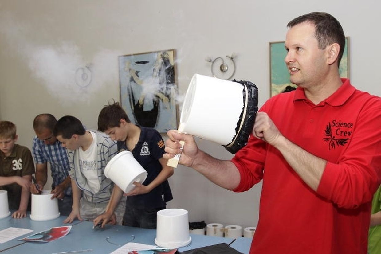 Les petites têtes blondes s'activent autour d'un banal sceau d'eau. L'objectif? Créer un windshooter , c'est-à-dire un appareil qui est capable de tirer contre le vent. Des courants d'air puissants sont ainsi créés, ce qui permet d'éteindre une bougie à distance. Et si on ajoute de la fumée au tout, on forme de petits cercles qui s'envolent.