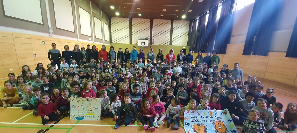 Am 14. Februar überreichten die Kinder dann voller Stolz jeweils einen Scheck in Höhe von 1 500 € an „Fondation Kriibskrank Kanner“ und an „Action pour un Monde Uni“. Anschließend wurde den Kindern anhand von interessanten Fotos und Videos erklärt wofür das gespendete Geld benötigt wird.