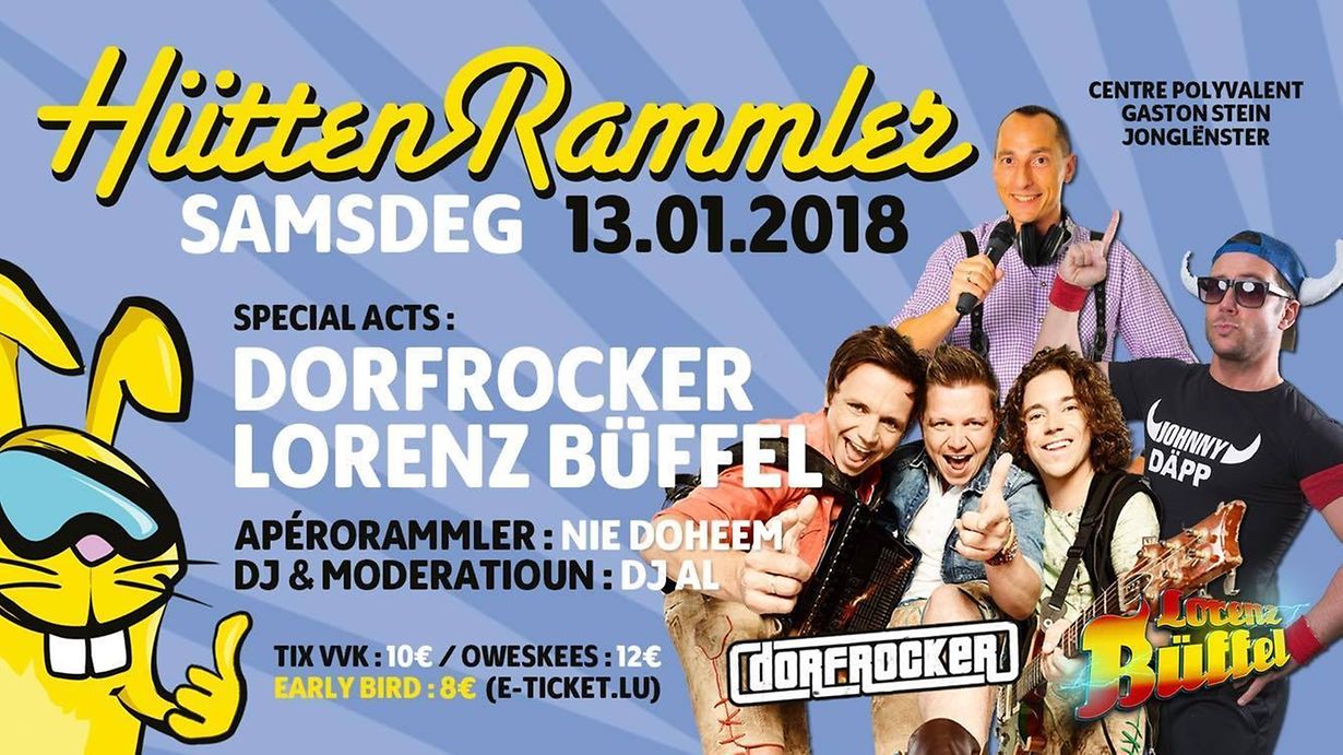 Junglinster Hüttenrammler 2018 13 Jan 2018 13 Jan See More 13 Jan Claude Oe Published on Wednesday, 3 January, 2018 at 16:58 Rue Nicolas Glesener, 6131 Junglinster, Luxemburg Super Stemmung an super Musek......mat Apero Rammler Report inappropriate content More news by Claude Oe > Blacklight Tournoi organiseiert vum BCJonglenster 31/10/11 Junglinster