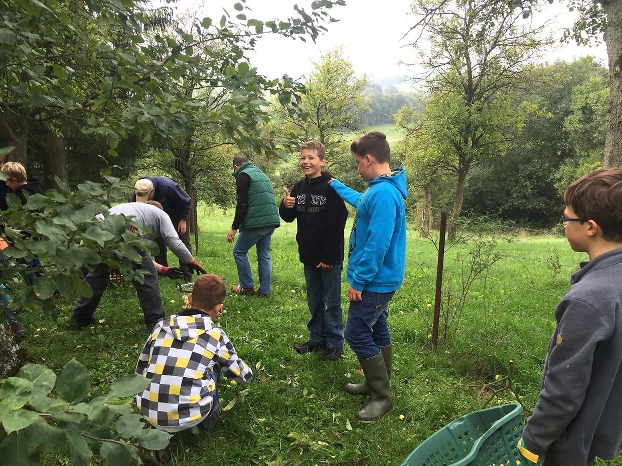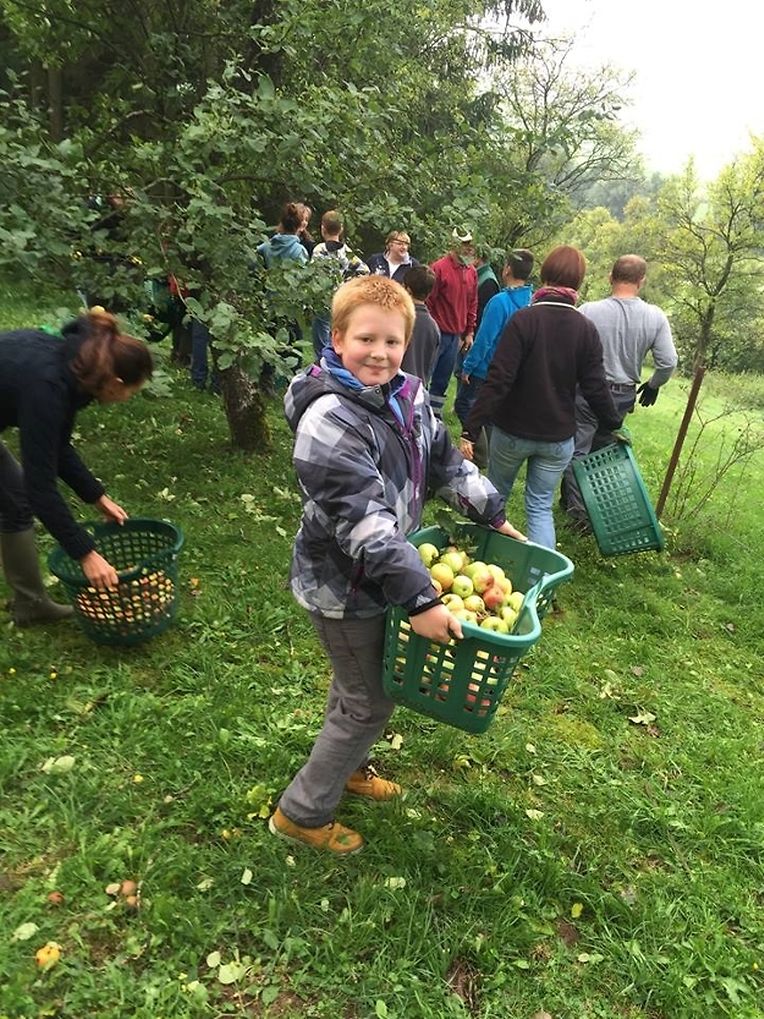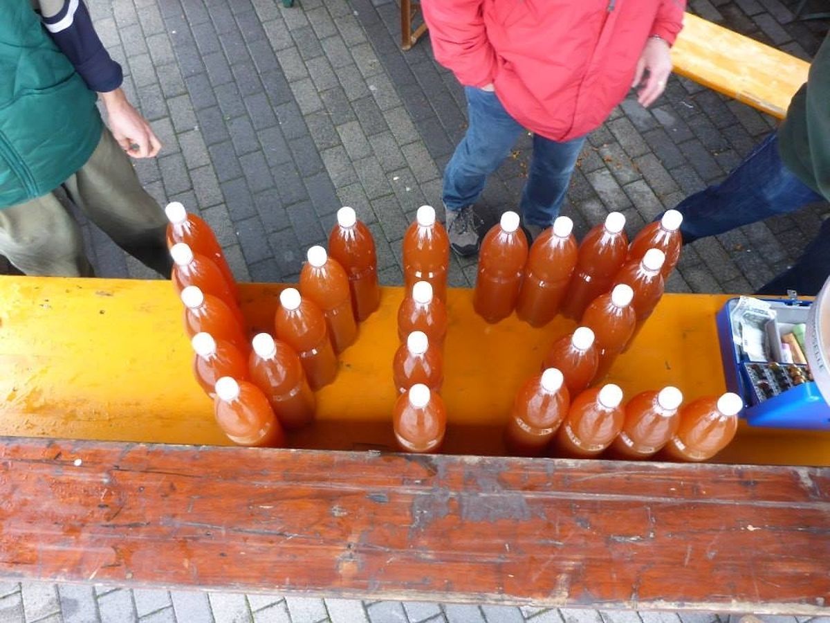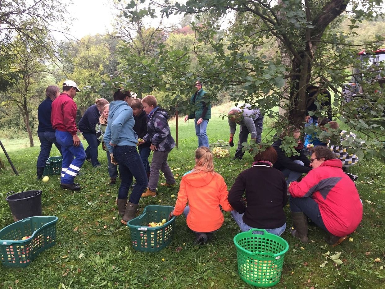 Lëschte Samsden war den Gonnerenger Duerfclub zu Gonnereng an och zu Uesweller, Iechternach an Berbourg Äppel raafen fir Viz ze maachen. Vun deem engen Deel, gött den Week-End vum 3. an 4. Oktober bäi "Allerlee vun Heiheem" frösche Viz gemach. Den Rescht geet bäi d'Firma Lahr fir agekachten Viz ze preparéieren.