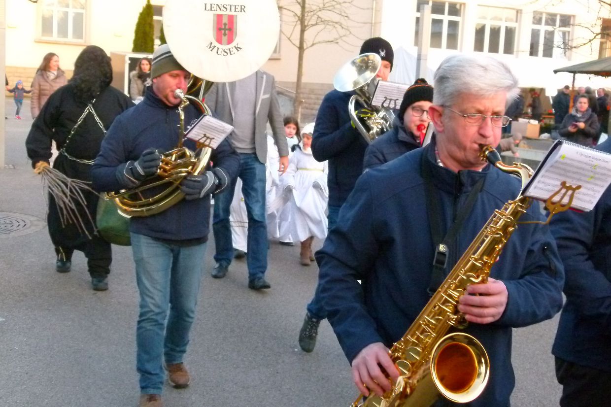 Wéi et schon zur Traditioun ginn ass, besicht all Jar de Kleeschen d'Kanner aus der Lënster Gemeng am Kader vum Adventsmaart. De Kleeschen an den Houseker ware begleet vun de Schäffe Françoise Hetto-Gaasch a Gilles Baum, vun enger Rei vun Engelcher, vu Guiden a Scouten an der Musek. Vill Leit hate sech och op der Plaz virum Kulturzenter afonnt, fir deer flotter Feier bäizewunnen. A senger Usproooch huet de Kleeschen drop higewisen, datt d'Kanner aus der Gemeng den Houseker net bräichten ze fäerten, well si wire bei deene bravste Kanner aus dem ganze Land a si hätten hire Kaddo méi wéi verdéngt.