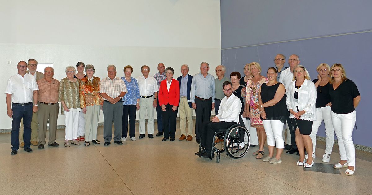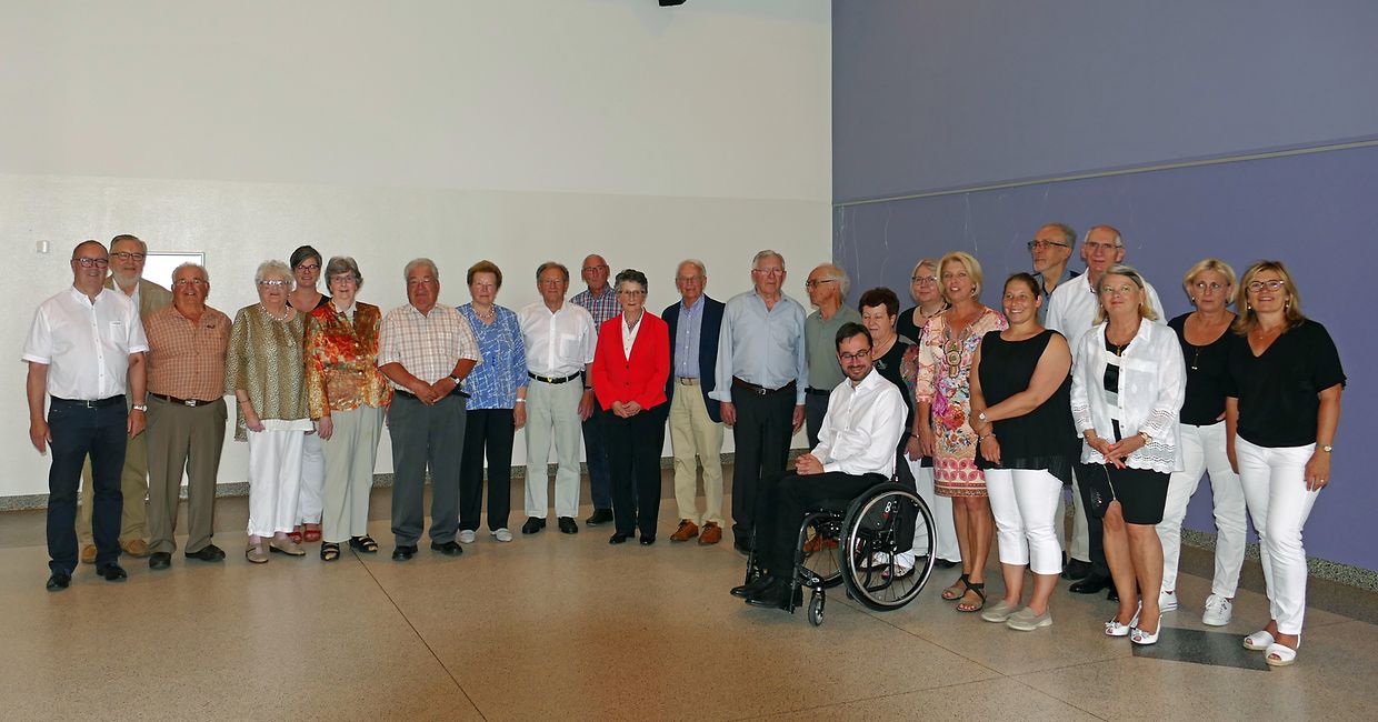 Der zur Tradition gewordene « Seniorendag » in der Gemeinde Junglinster hatte auch dieses Jahr einen großen Erfolg zu verzeichnen. Die Sozialschöffin Françoise Hetto-Gaasch und die Präsidentin der Seniorenkommission, Mireille Hinkel-Tadaszak, zeigten sich in ihren Ansprachen erfreut, rund 130 Senioren – davon eine Reihe von Bewohnern des CIPA Jonglënster - begrüßen zu können. Das Mittagessen - zubereitet vom Restaurant EuroHotel - schmeckte allen Teilnehmern ausgezeichnet wie auch die Torten, die von Gilbert Kapp geliefert wurden. Während des Mittagessens unterhielt Rol Gieres die Senioren mit bekannten Melodien. Danach weckte der bekannter Freddy-Quinn-Imitator, Norbert Klinkhammer, bei den Anwesenden Erinnerungen an ihre Jugendzeit. Françoise Hetto-Gaasch blickte auf die vergangenen 80 Jahre zurück, ehe sie mit Bürgermeister Romain Reitz und der Präsidentin Mireille Tadaszak den folgenden anwesenden Jubilaren, die dieses Jahr ihren 80. Geburtstag feiern, als Geschenk ein Fotoalbum von Raymond Clement überreichte : Denis Dimmer, Norbert Huss, Denise Lentz-Lemmer, Joseph Meysemburg, Nicolas Migliosi, Ginette Mackel-Rossini, Marie-Louise Muller-Sauber, Laure Nilles, Pierre Putz, Valy Santer, Manuel Silveira Jose, Armand Trierweiler, Pierre Wecker, Karin Wilgé-Wolf.