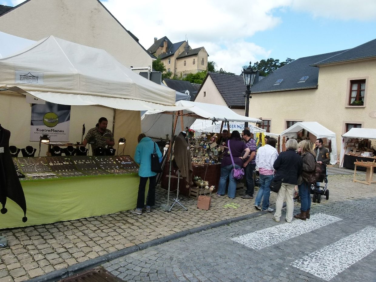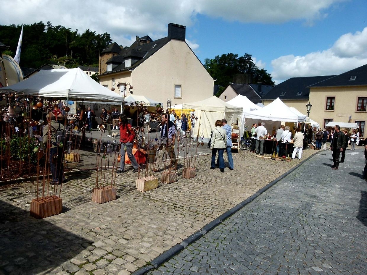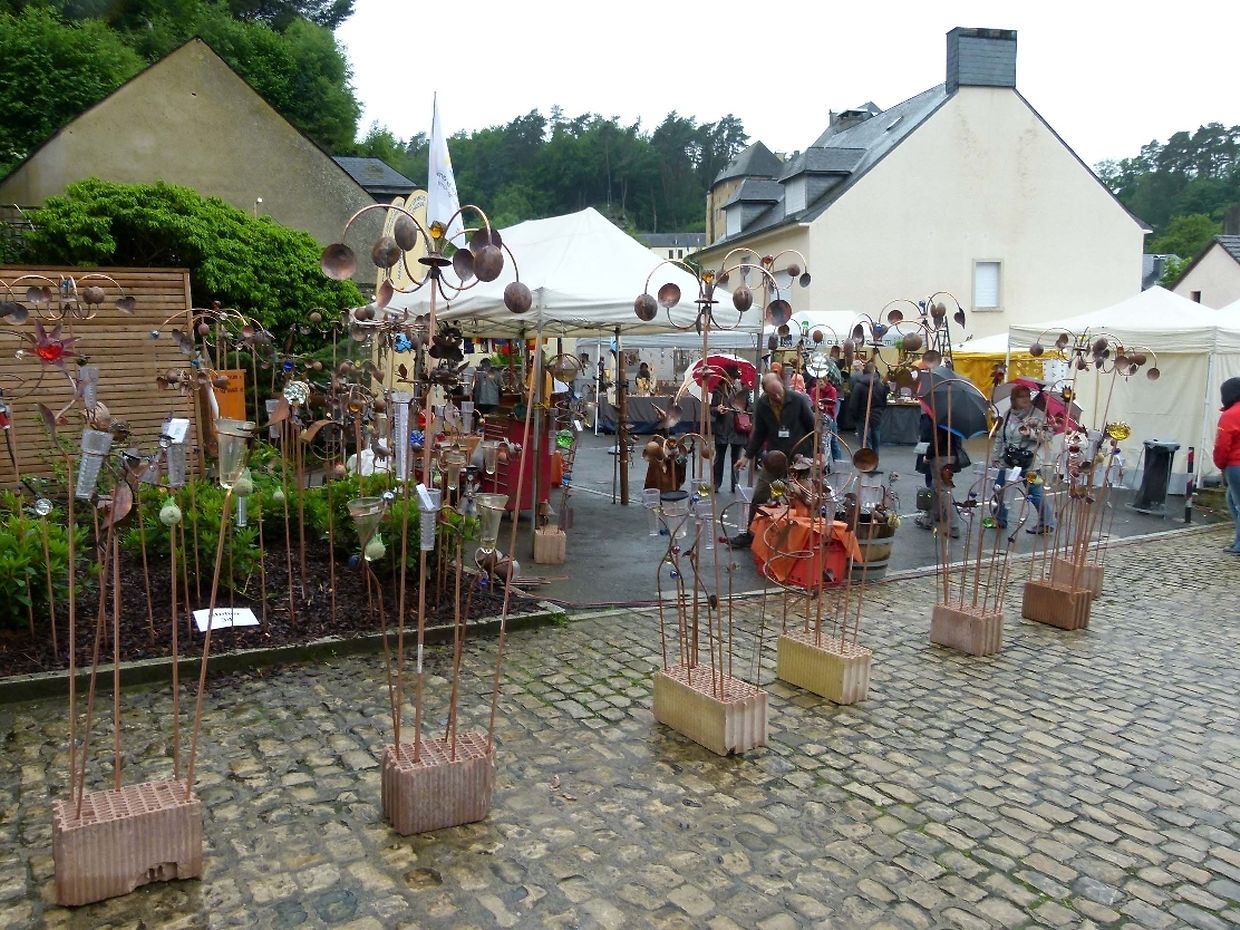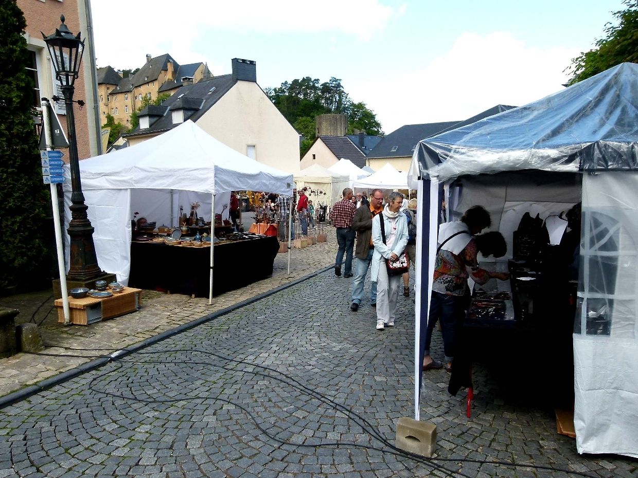 Fir déi 32. Kéier organiséiert de "Syndicat d'Initiative de la commune de Junglinster" d'Konschthandwierkerdeeg an der Buerg. Haut Samsdeg, de 16 . Juni, a mar, de 17. Juni, weise méi wéi 100 Konschthandwierker hir Konschtwierker an der Gonnerenger Gaass, am Zentrum vum Duerf, an der Strooss fir bei d'Schlass erop, am Schlasshaff an am Schlass selwer. Fir d'Iessen an d'Gedrénks suerge Veräiner aus der Buerg, vun Allënster a vun Amber/Lënster. Trotz deem ville Reen waren deen éischten Dag scho ganz vill Konschtfrënn an d'Buerg komm; a mar - wann d'Wieder jo méi schéin ass - da wäerten erëm Dausende vu Leit an de Stroossen, ronderëm d'Schlass an am Schlass d'Wierker bewonneren an och kafen. De Künstler, de Veräiner an dem Syndicat wënsche mir dee Succès, dee si all verdéngen. (dd)