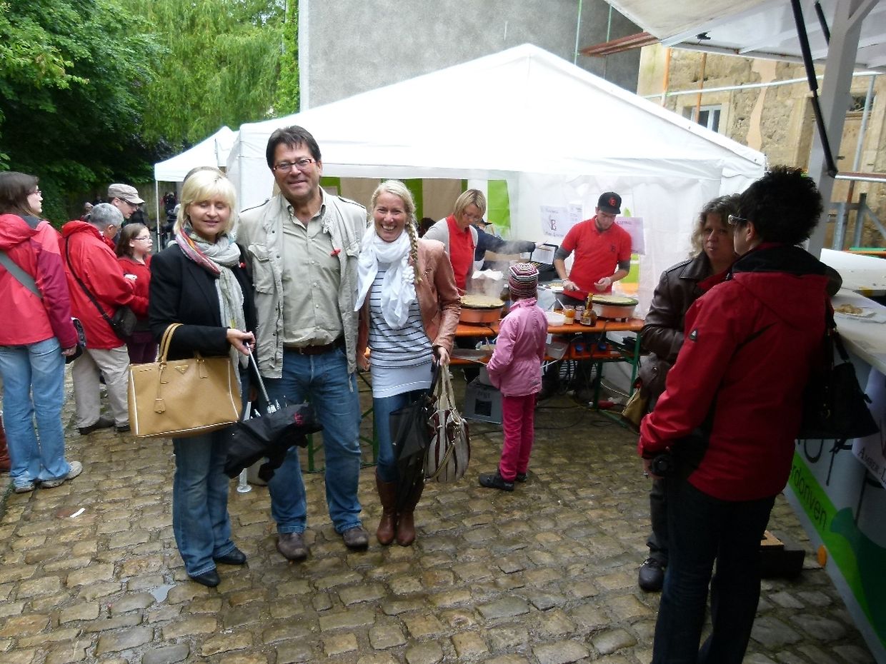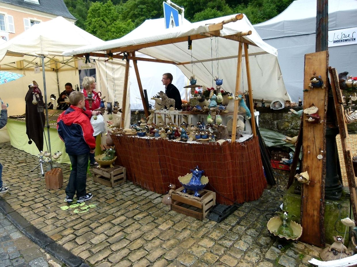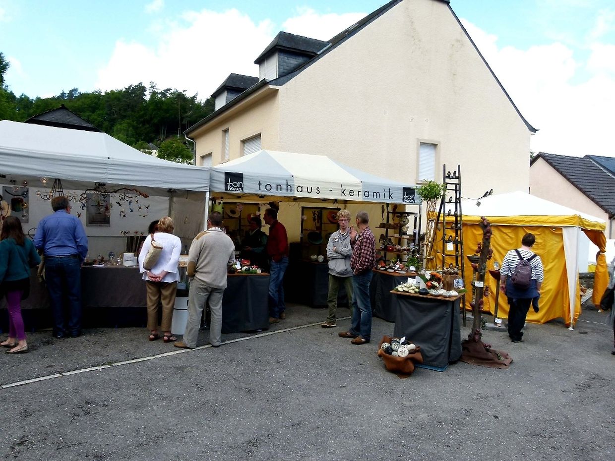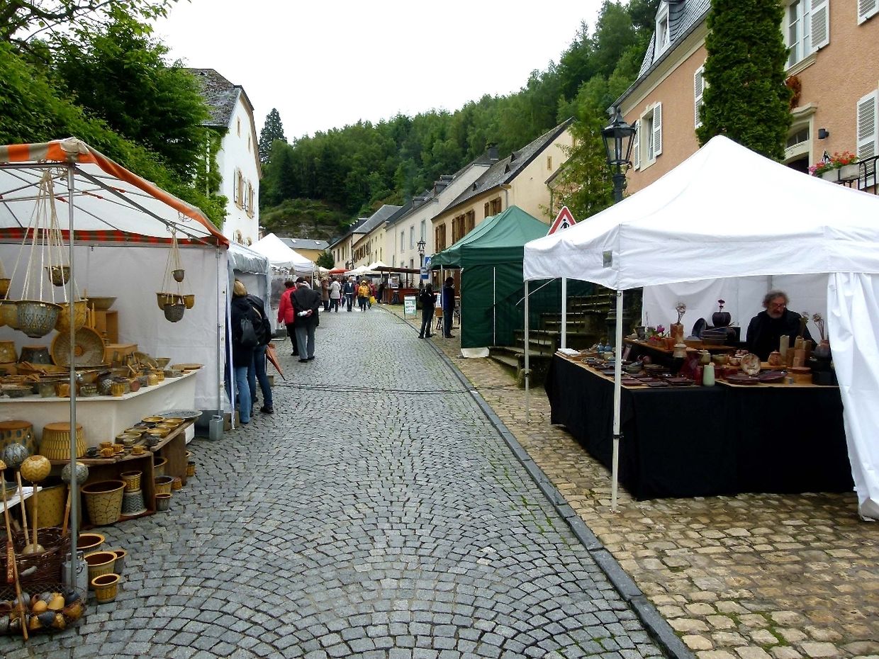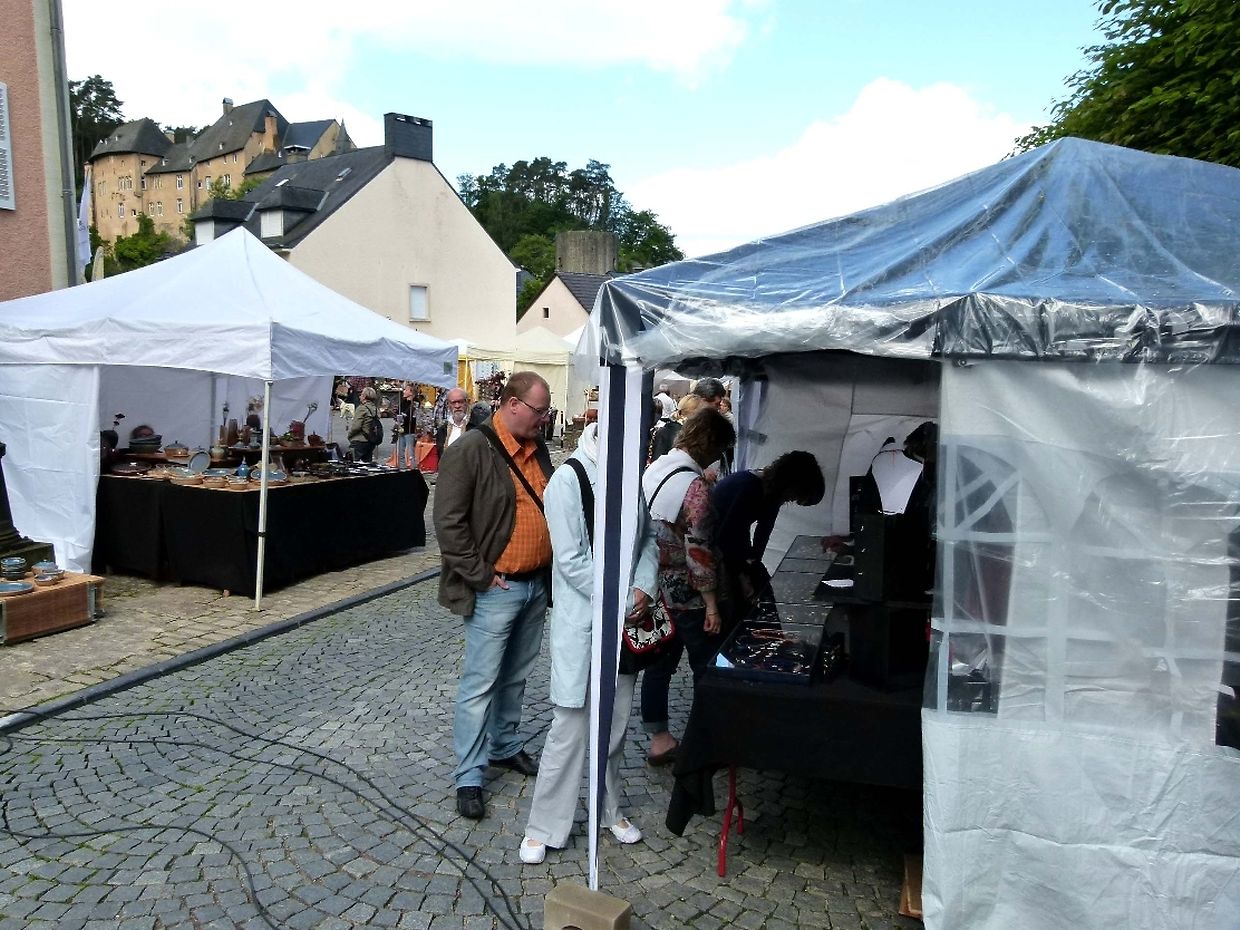 Fir déi 32. Kéier organiséiert de "Syndicat d'Initiative de la commune de Junglinster" d'Konschthandwierkerdeeg an der Buerg. Haut Samsdeg, de 16 . Juni, a mar, de 17. Juni, weise méi wéi 100 Konschthandwierker hir Konschtwierker an der Gonnerenger Gaass, am Zentrum vum Duerf, an der Strooss fir bei d'Schlass erop, am Schlasshaff an am Schlass selwer. Fir d'Iessen an d'Gedrénks suerge Veräiner aus der Buerg, vun Allënster a vun Amber/Lënster. Trotz deem ville Reen waren deen éischten Dag scho ganz vill Konschtfrënn an d'Buerg komm; a mar - wann d'Wieder jo méi schéin ass - da wäerten erëm Dausende vu Leit an de Stroossen, ronderëm d'Schlass an am Schlass d'Wierker bewonneren an och kafen. De Künstler, de Veräiner an dem Syndicat wënsche mir dee Succès, dee si all verdéngen. (dd)