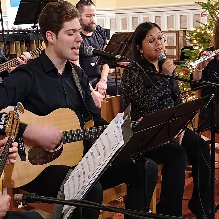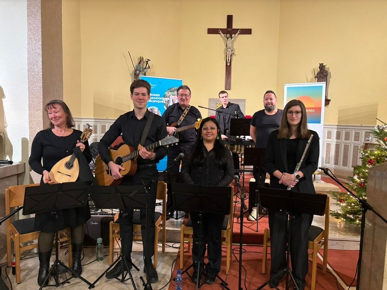 Abwechselnd erklangen bestbekannte, von der Präsidentin Isabelle Merlevede eigens arrangierte Melodien, gespielt auf Mandoline, Gitarre, Geige, Querflöte, E-Bass, Marimba, Cajon sowie Gesang und sorgten für ein besinnliches, stimmungvolles Weihnachtskonzert.