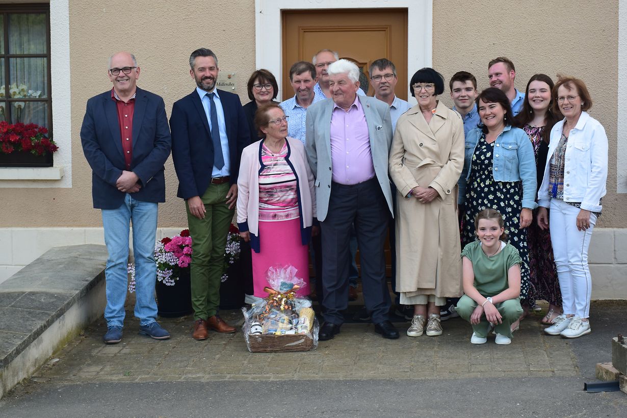 Zur diamantenen Hochzeit gratulierten im Namen der Gemeinde Berdorf der vollständig vertretene Schöffenrat und dies bei einem persönlichen Besuch in der Kalkesbach, bei dem wiederum ein Teil der Familie teilnahm.