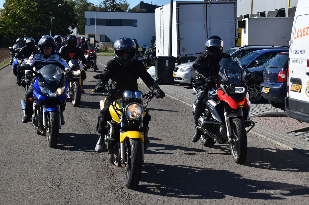 Beim Start am frühen Morgen in Kayl waren die Aussentemperaturen recht kühl, das Thermometer zeigte gerade mal 2 Grad an, doch recht schnell wurde es zunehmend wärmer. Und bei klarem blauen Himmel und sonnigen Temperaturen konnten die 38 Teilnehmer der "Schung Tour" - gemeint sind die Umrisse des Grossherzogtums - des Moto-Clubs Kayldall ihre Herbstausfahrt geniessen. Die Biker benutzten die Strassen im westlichen Teil Luxemburgs, teils wurde auch in Belgien gefahren, um nach Heiderscheid (Ort) zu gelangen, wo man Mittag machte. Der zweite Teil der Ausfahrt bestand aus einer Schleife in der Gegend um Vianden, man befuhr auch Strassen in der Eifel, um das Ziel in Heiderscheid (Fussekaul) anzusteuern. Dort beim gemütlichen Beisammensein endete die diesjährige Motorradsaison des MCK: